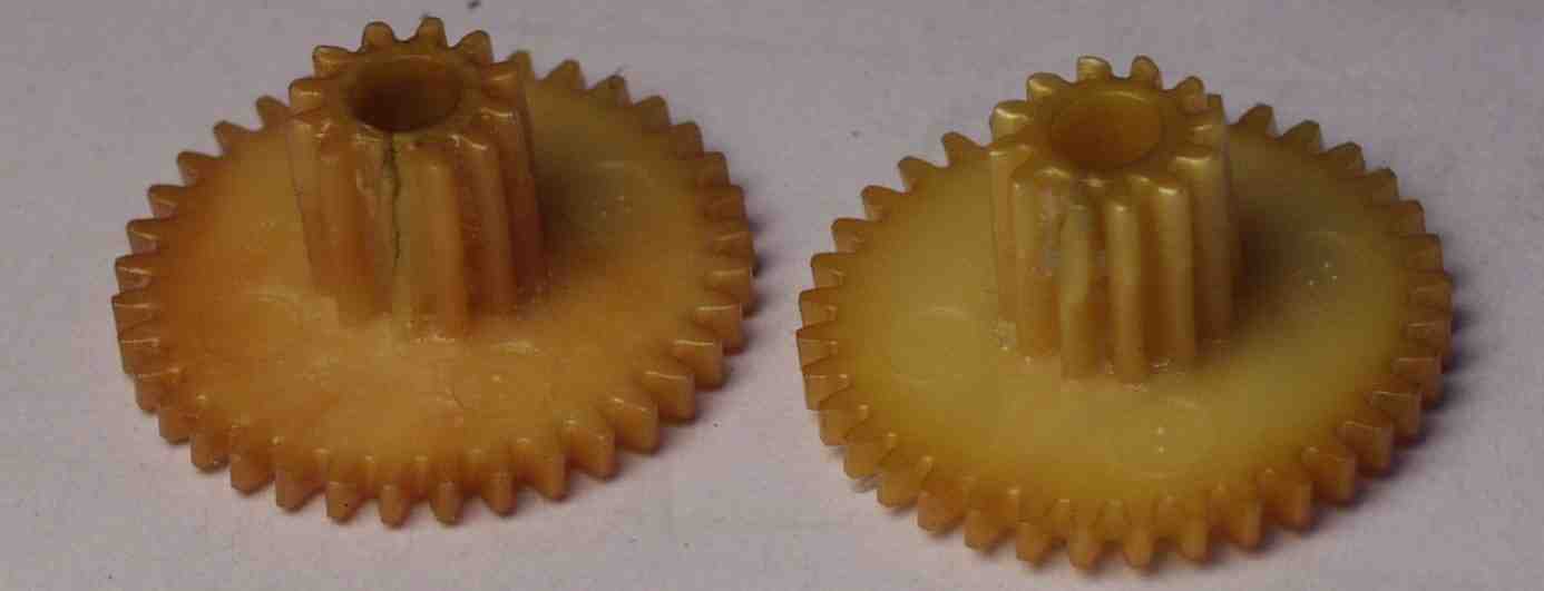 A−2. 点検中 2台とも割れた歯車、この為に動かない。