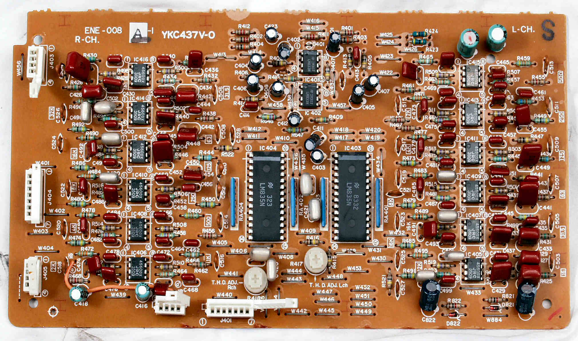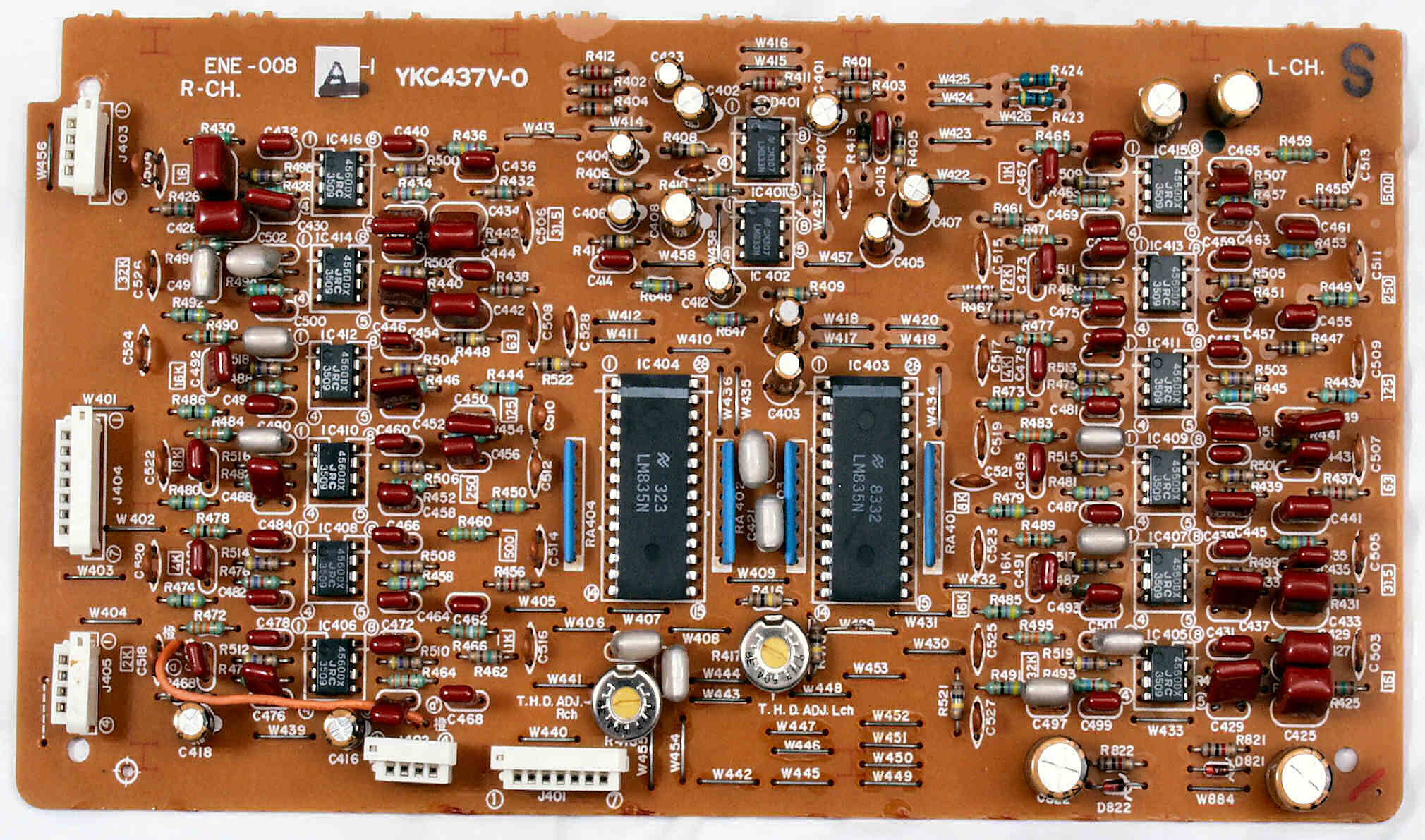 C−7B. 修理後 SEAアンプ基板。 電解コンデンサー17個、半固定VR2個交換。