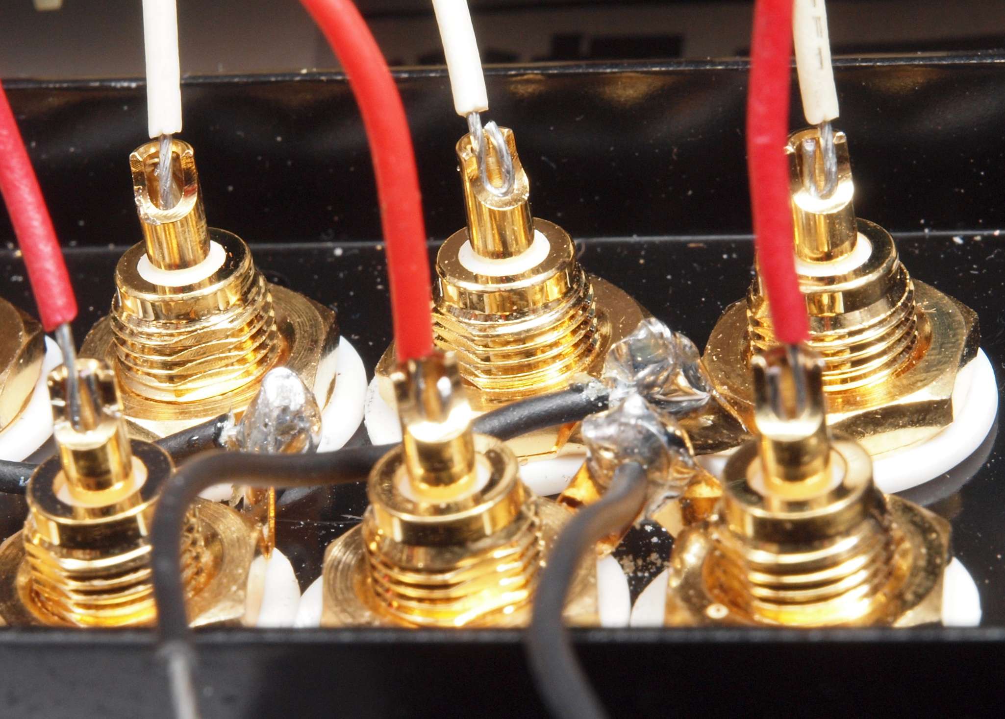 | A62. 点検中 WBT製RCA端子 WBT−0210Agも交換可能。。 さらに複雑な構造で「カチ」と差し込み感を与える。 | ||||||||||||||||||||||||||||||||||||||||||||||