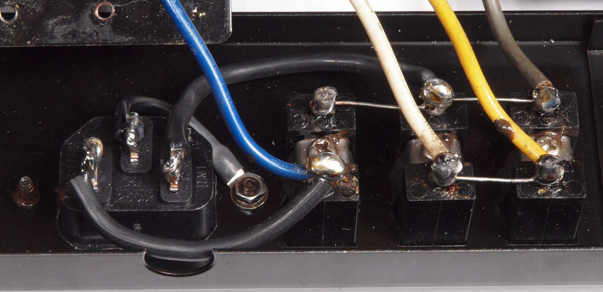 | CA1. 修理前 電源コード取り付け部。 | ||||||||||||||||||||||||||||||||||||||||||||||