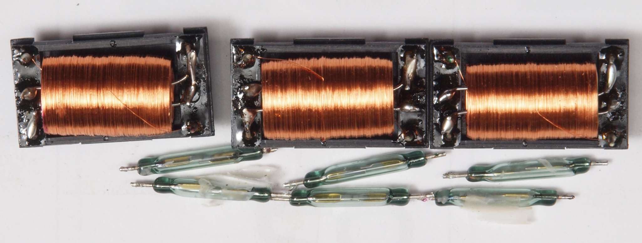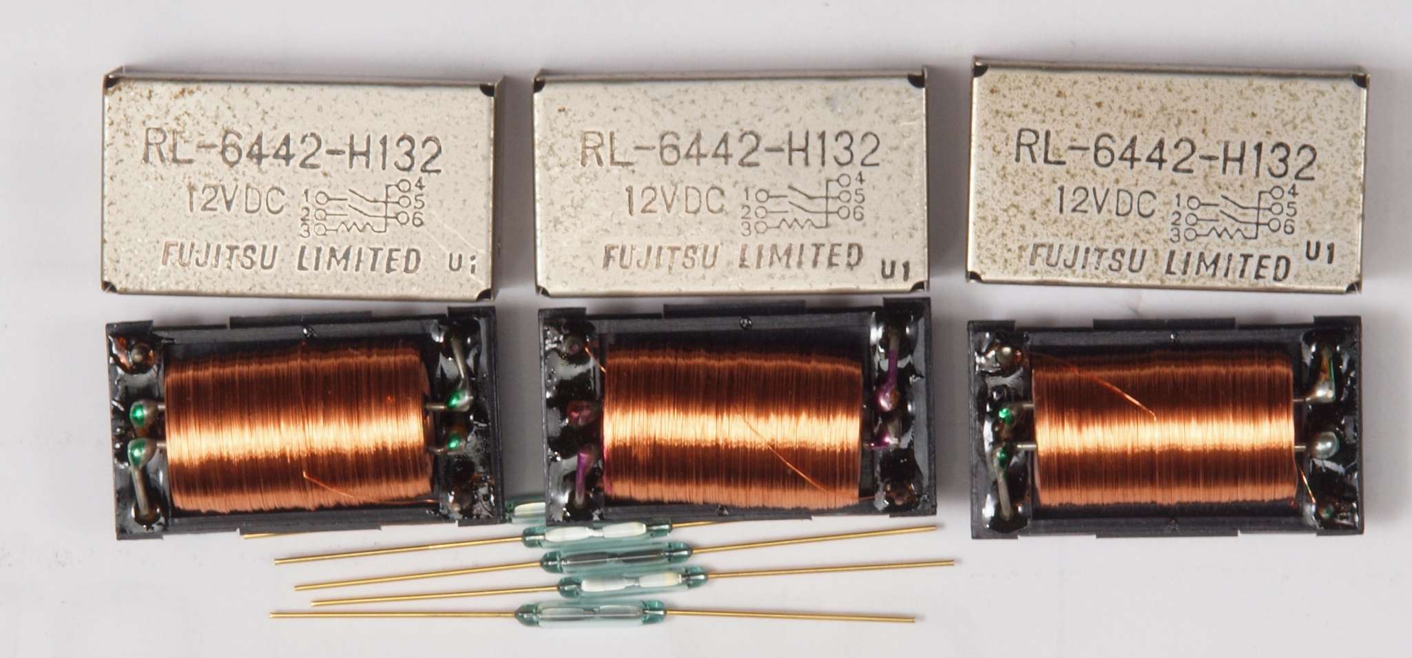 | CB1. リードリレーの修理中。 下にあるのが交換する素子。 | ||||||||||||||||||||||||||||||||||||||||||||||
