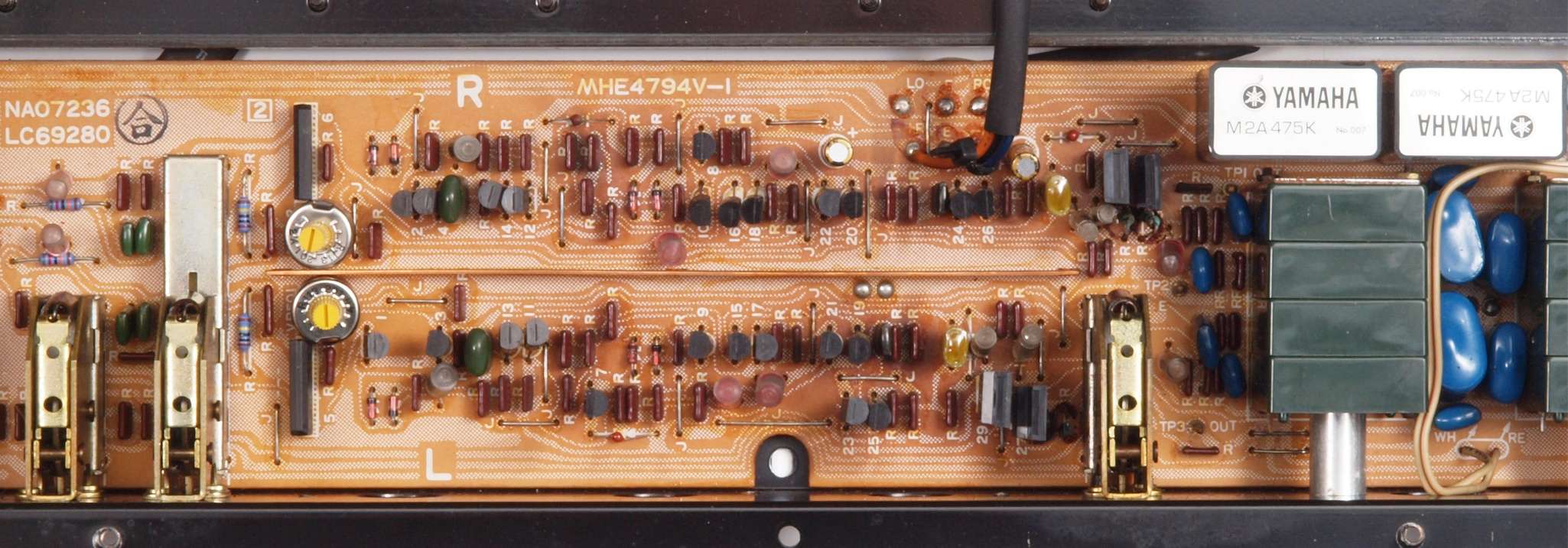 | C72. 修理後 ToneControl基板。 電解コンデンサー2個、フイルムコンデンサー2個、半固定VR2個交換 | ||||||||||||||||||||||||||||||||||||||||||||||