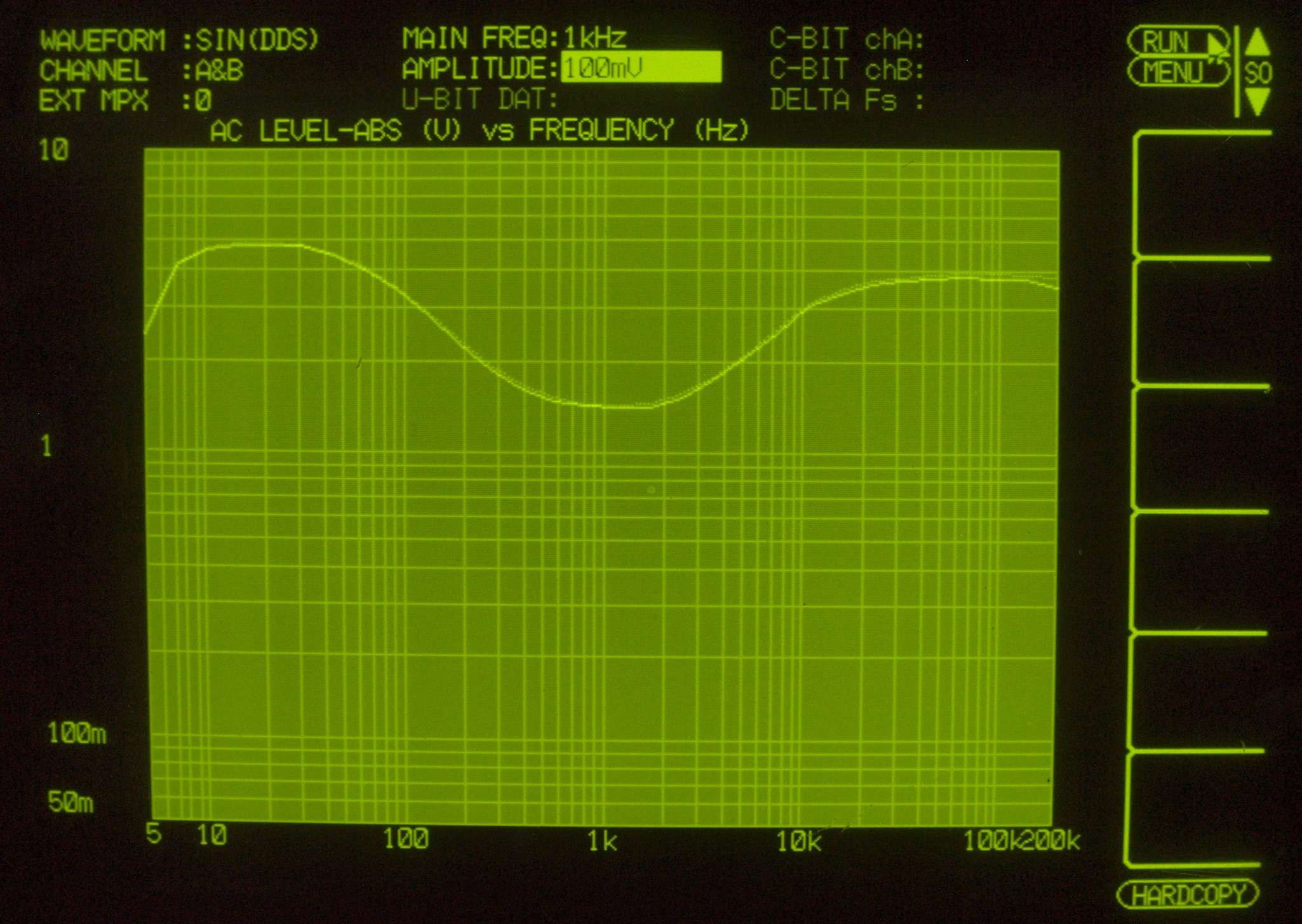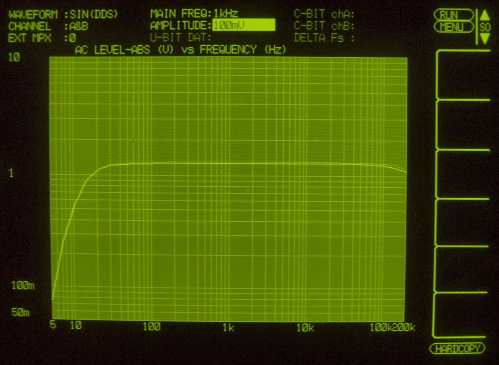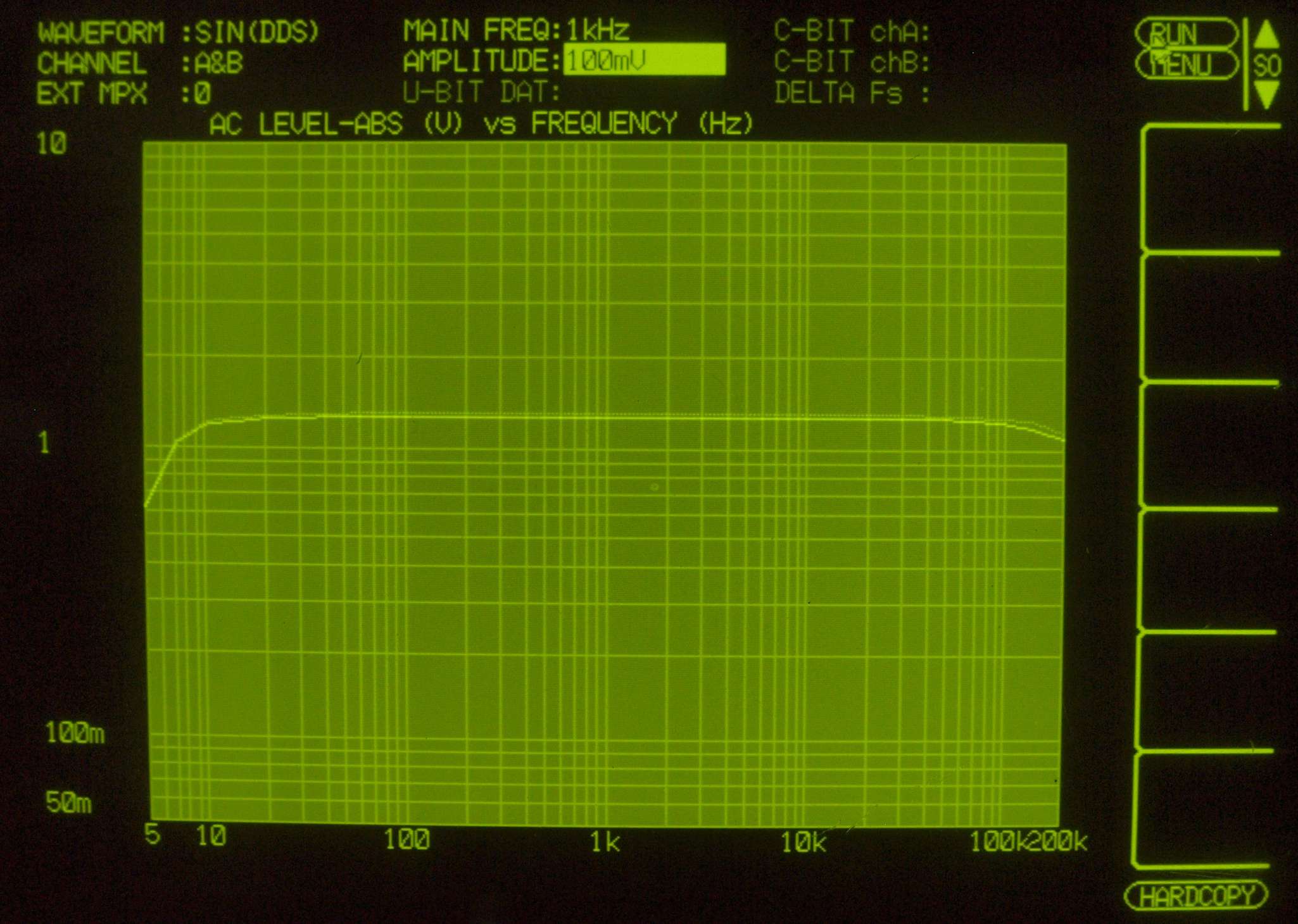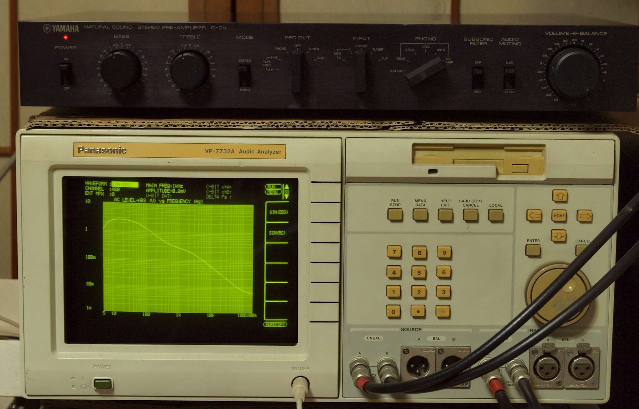 | F. 上位測定器による 調整・測定。 画像をクリックすると、大きく(横幅2050ドット)表示されます。 F0. 下のオーディオアナライザーVP−7732Aで自動測定 |