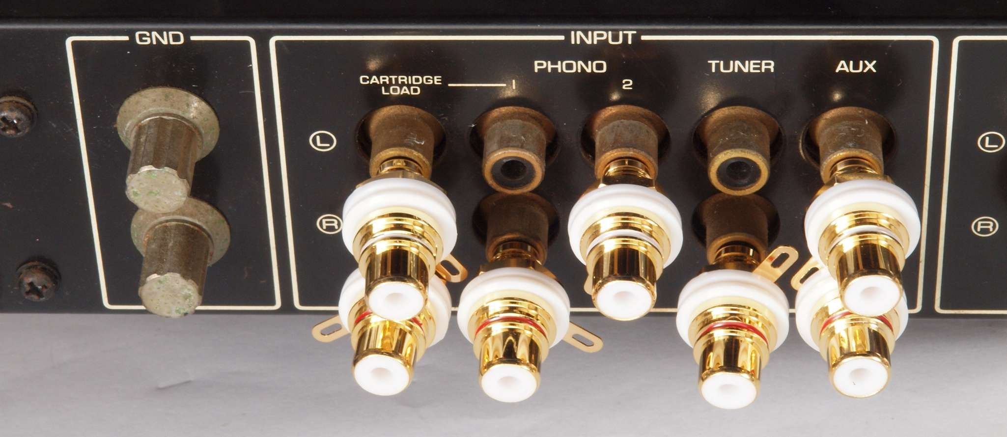 | C81. 修理前 PHONO、TUNER、AUX入力RCA端子。 | ||||||||||||||||||||||||||||||||||||||||||||||