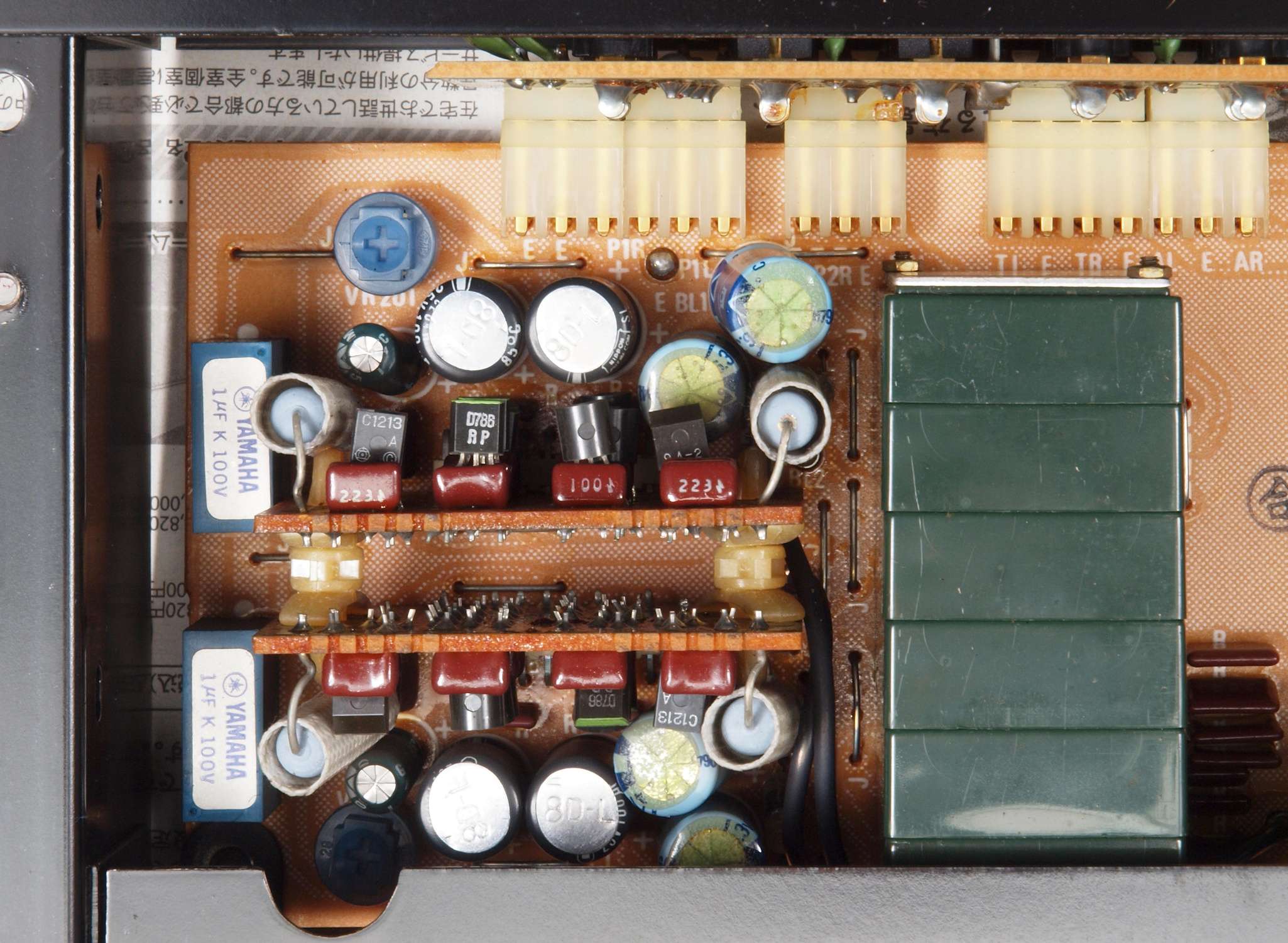 | C42. 修理後 EQ−AMP基板 電解コンデンサー7個、フイルムコンデンサー18個、半固定VR4個交換 | ||||||||||||||||||||||||||||||||||||||||||||||