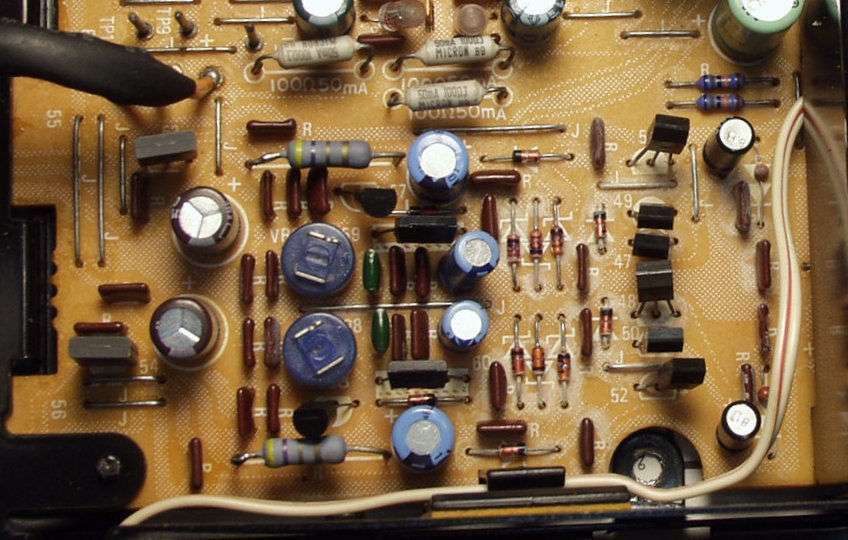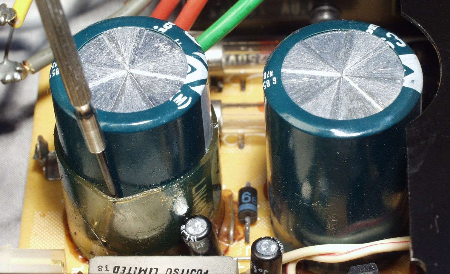 A−4. 修理前 電解コンデンサーが液漏れ? 「ベタベタ」している