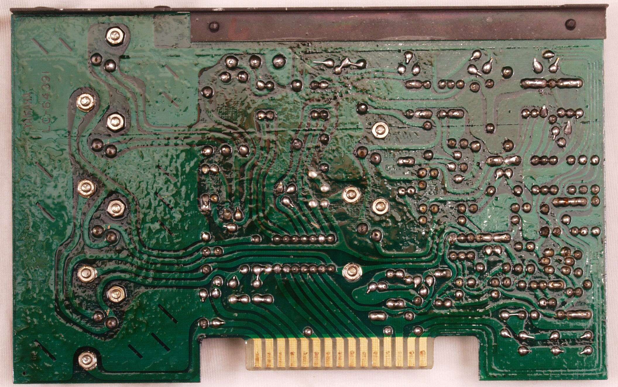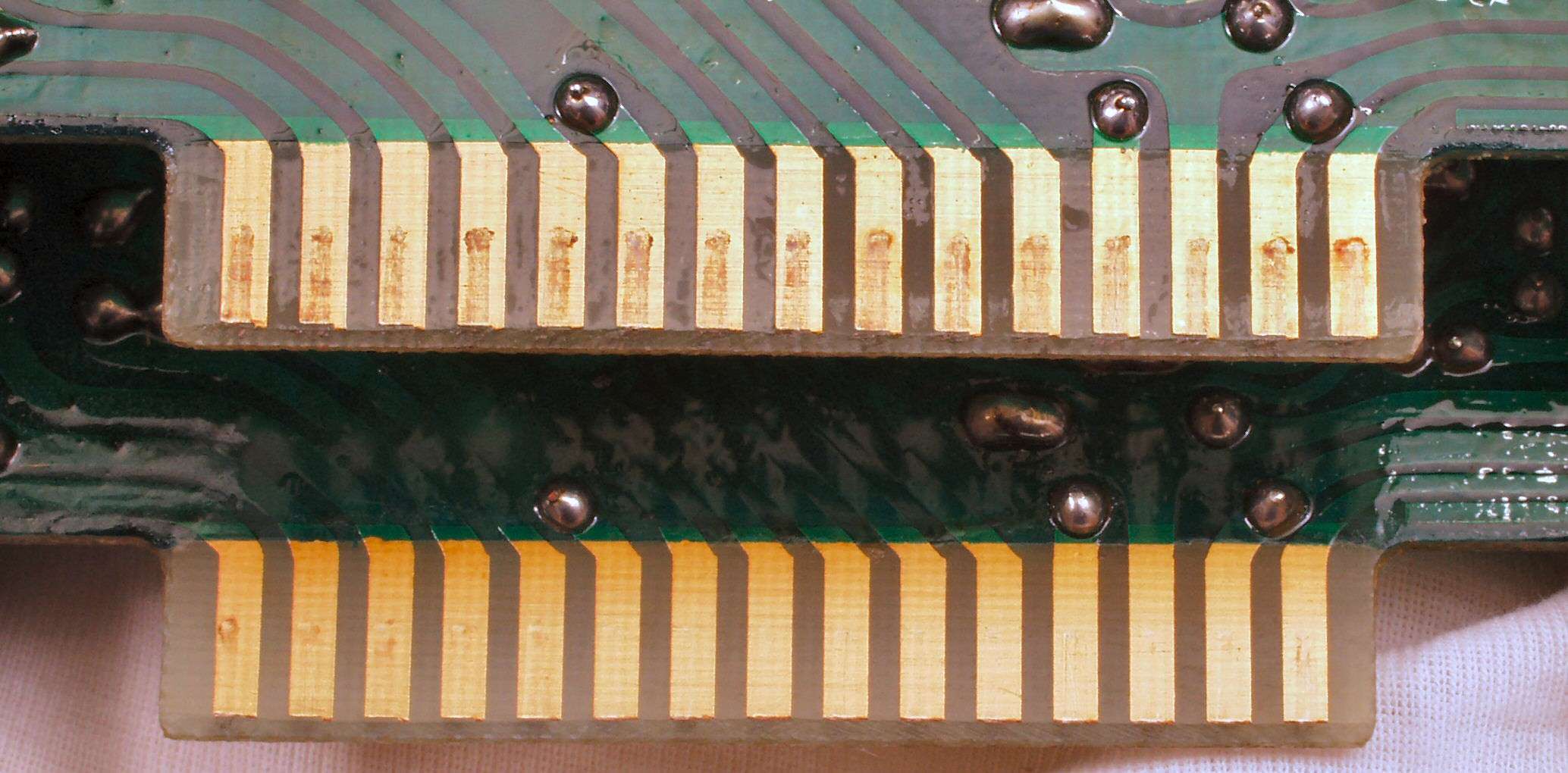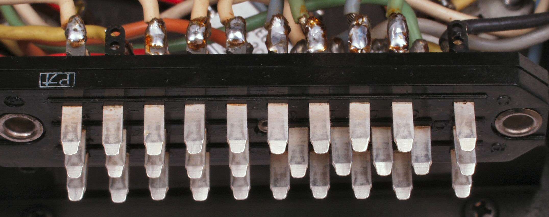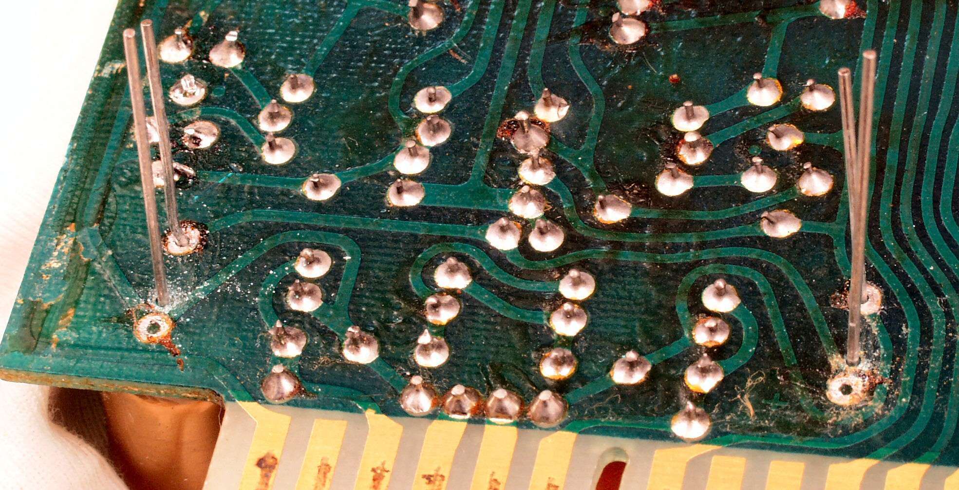 C2G. 修理(洗浄)後のドライブ基板コネクター足、上=前、下=後