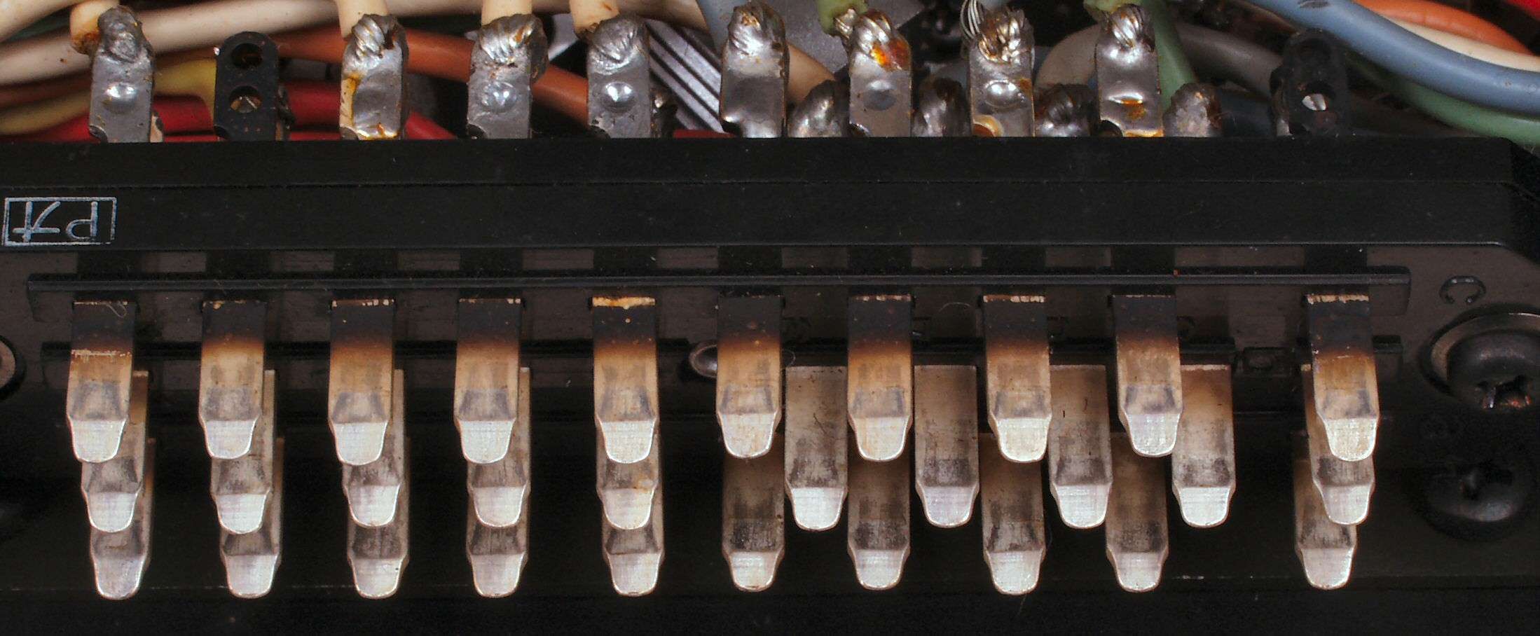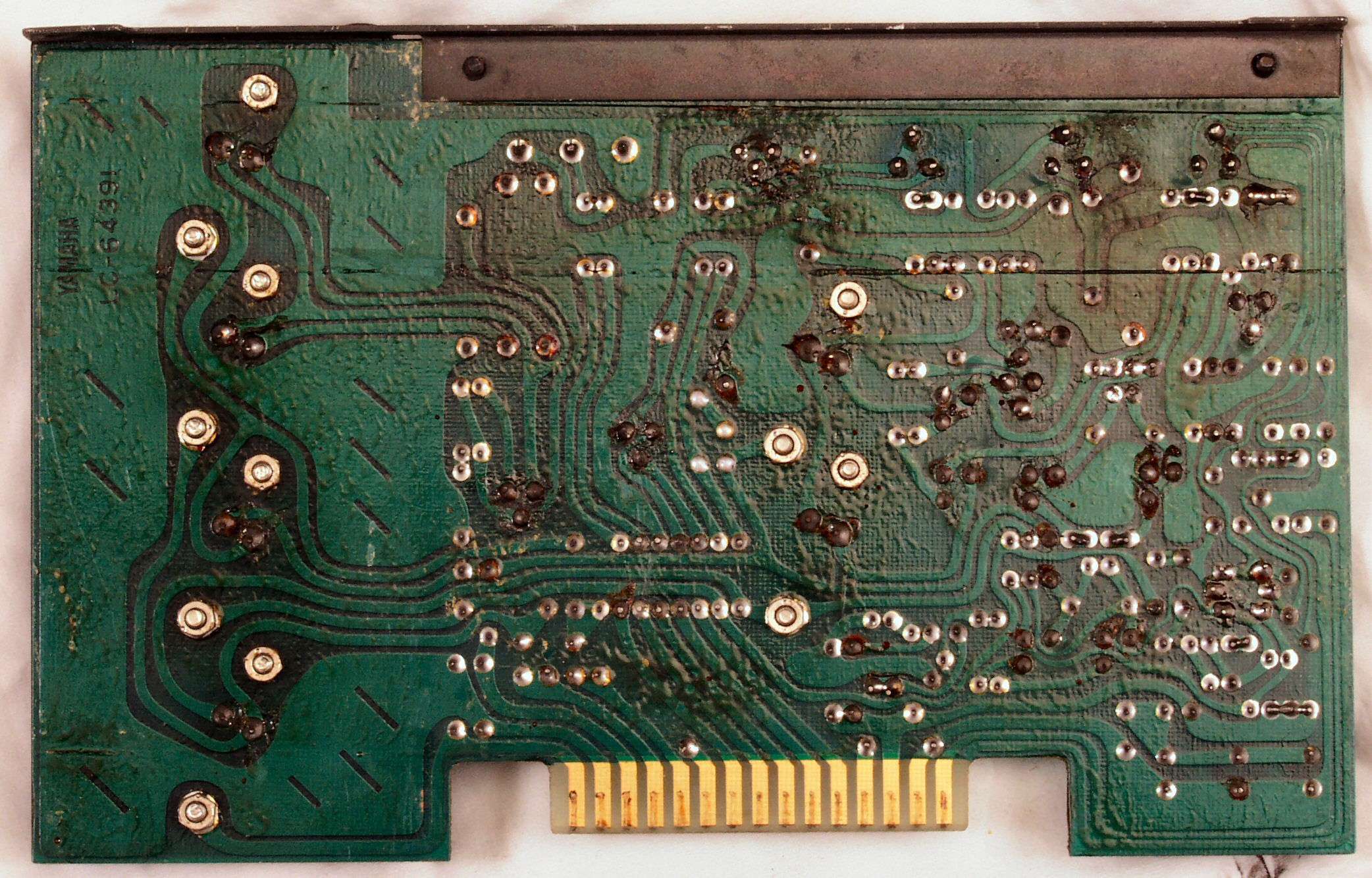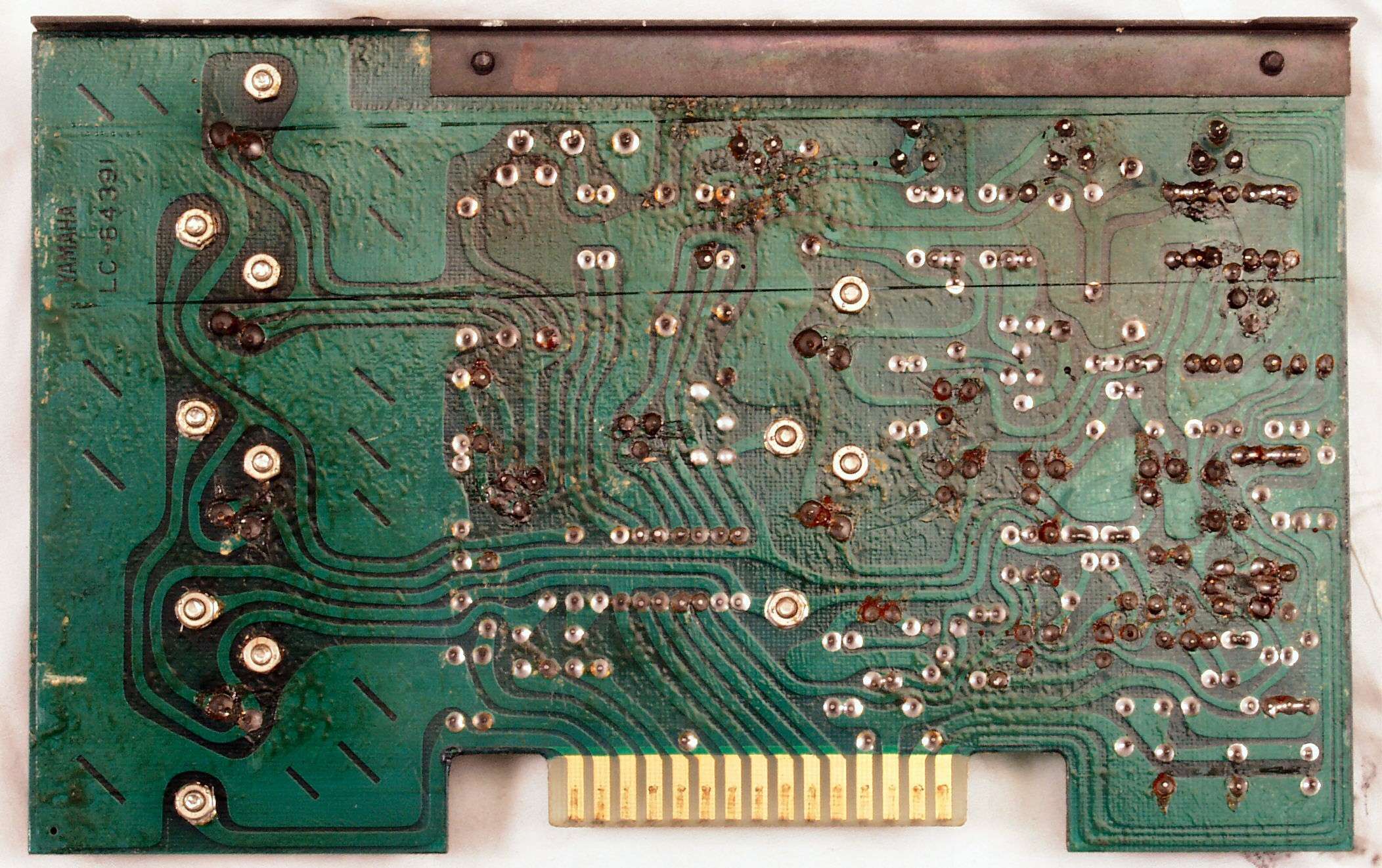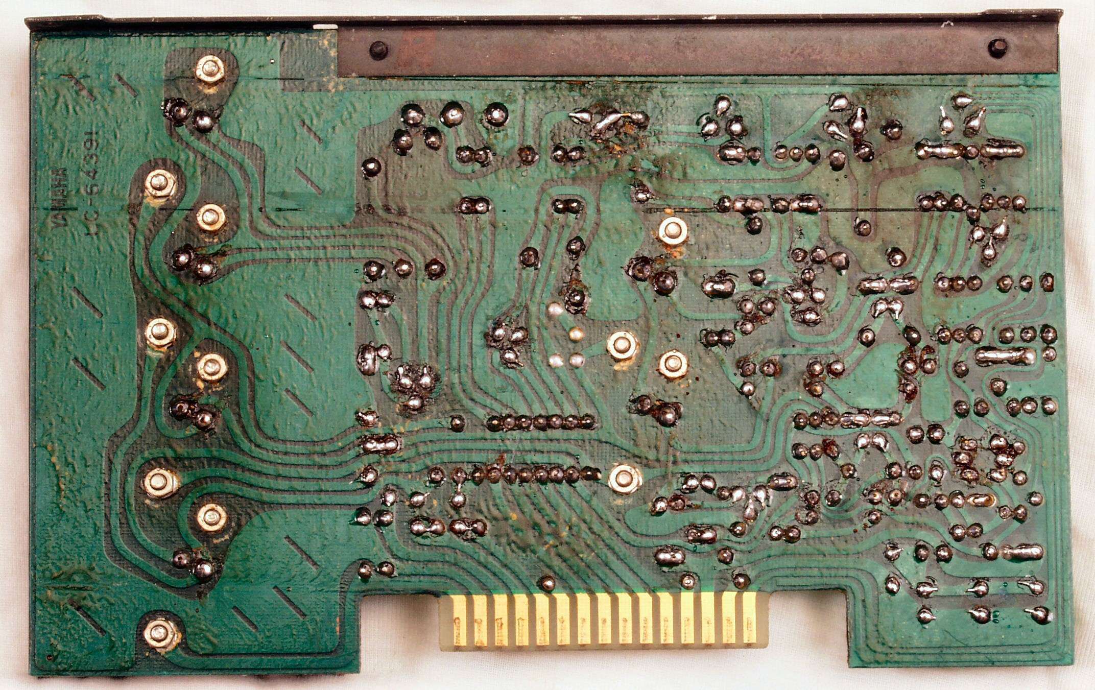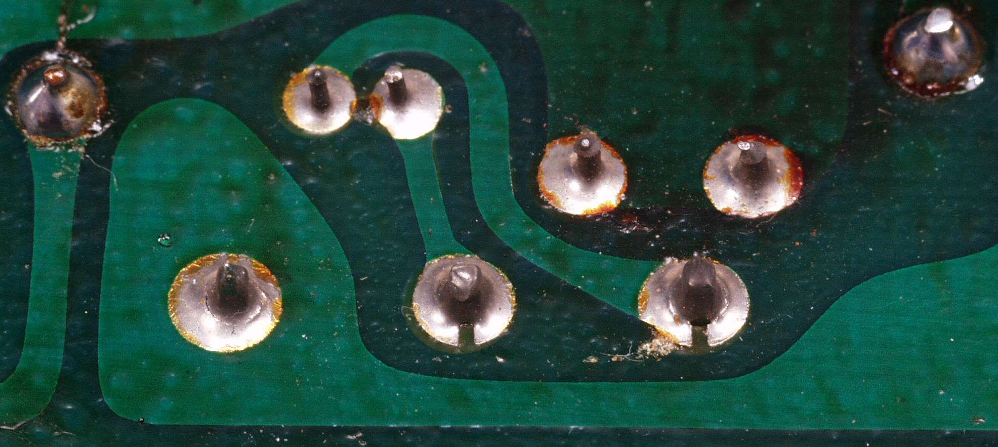 C2G. 修理(洗浄)後のドライブ基板コネクター足、上=前、下=後