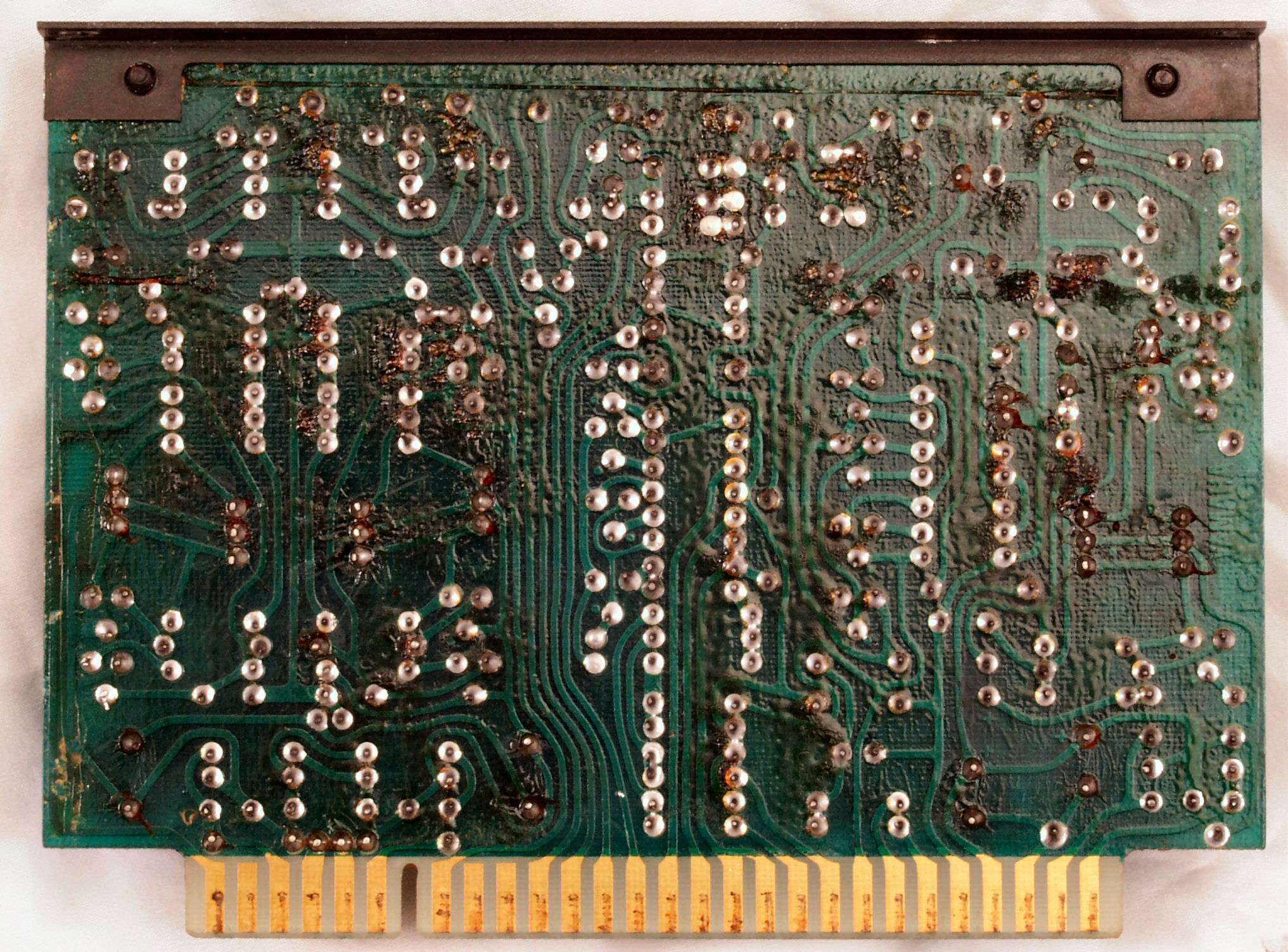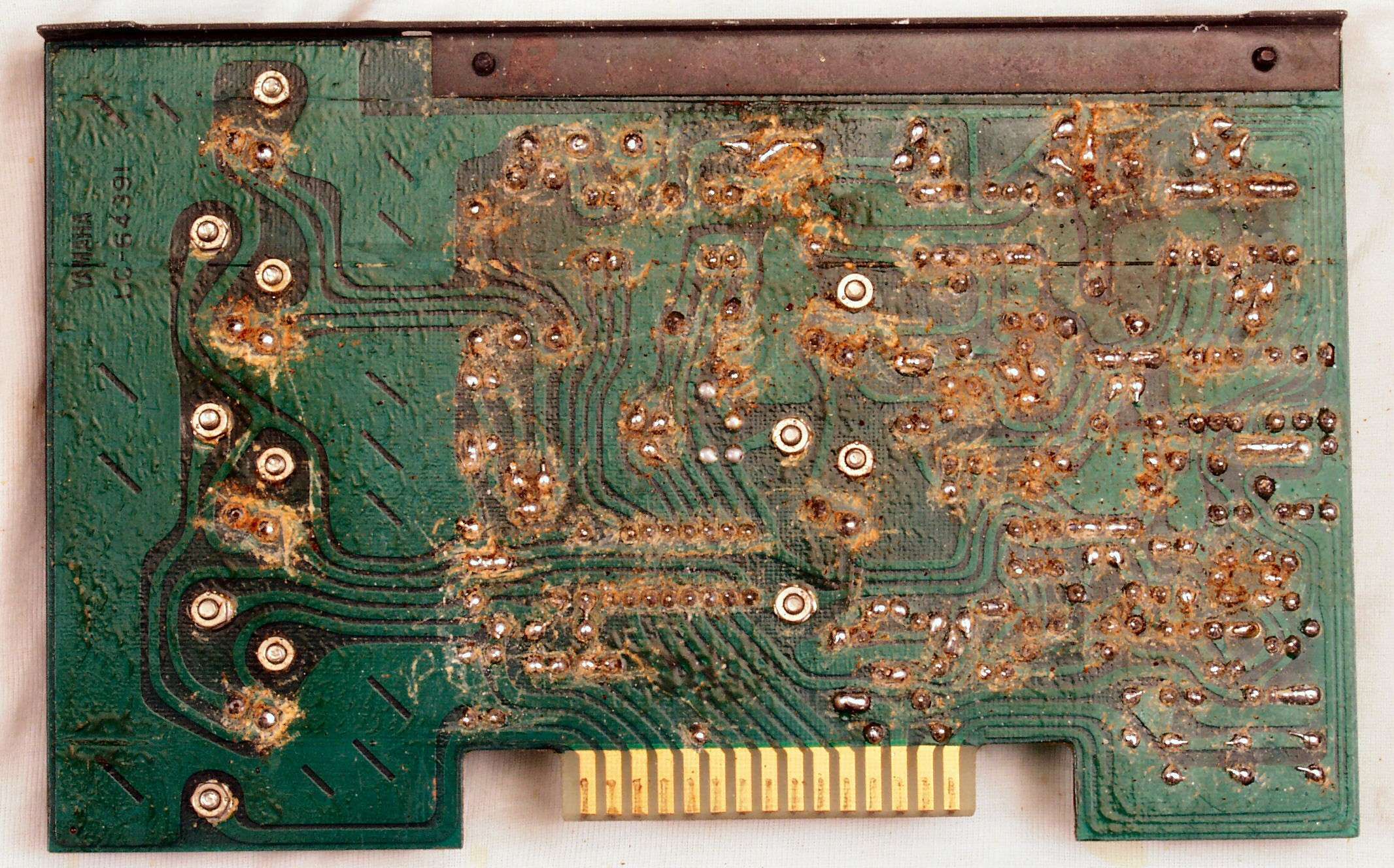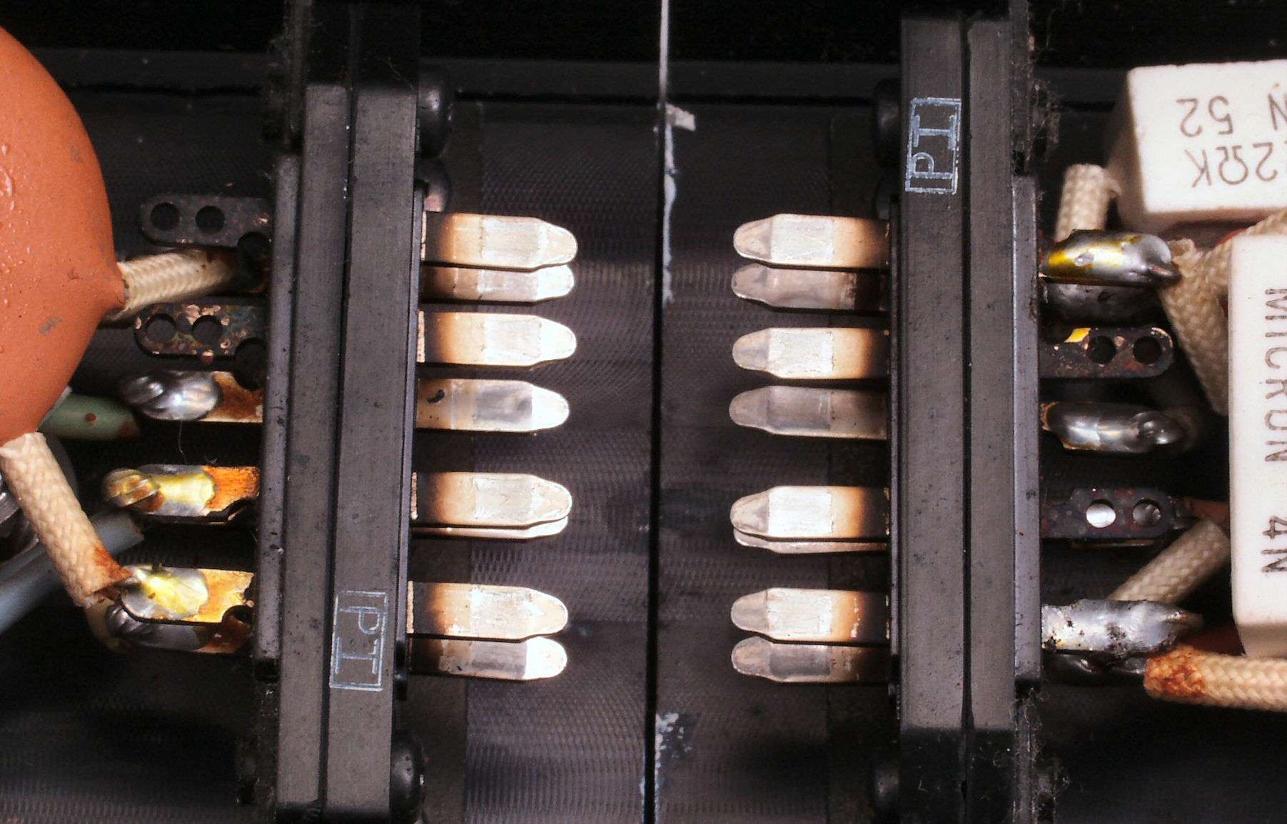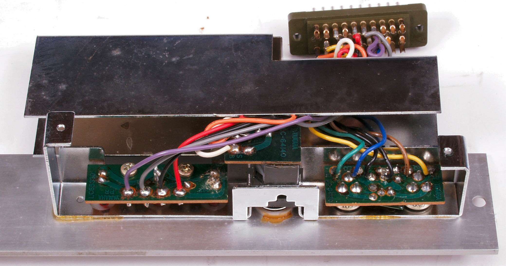 C2G. 修理(洗浄)後のドライブ基板コネクター足、上=前、下=後