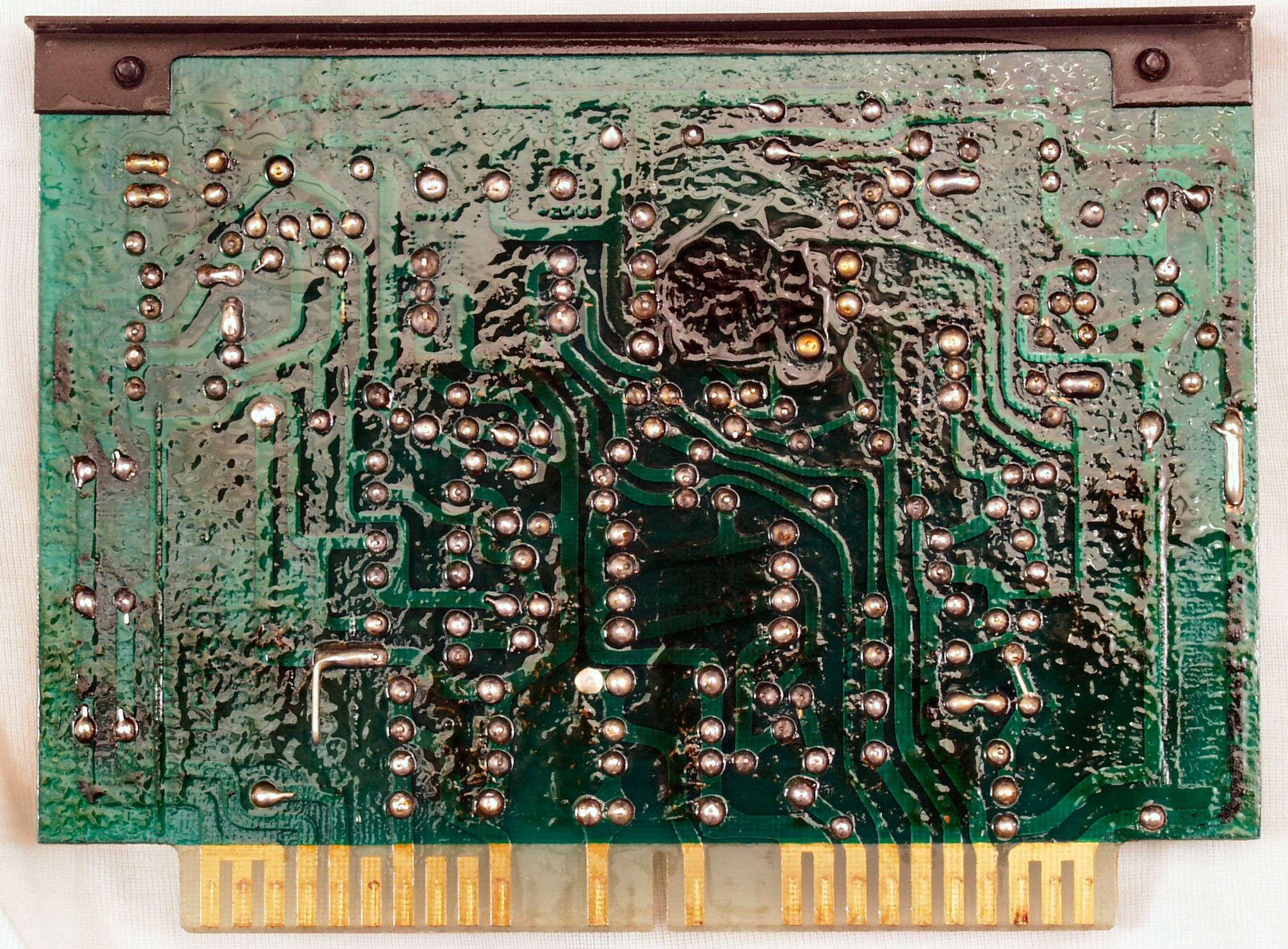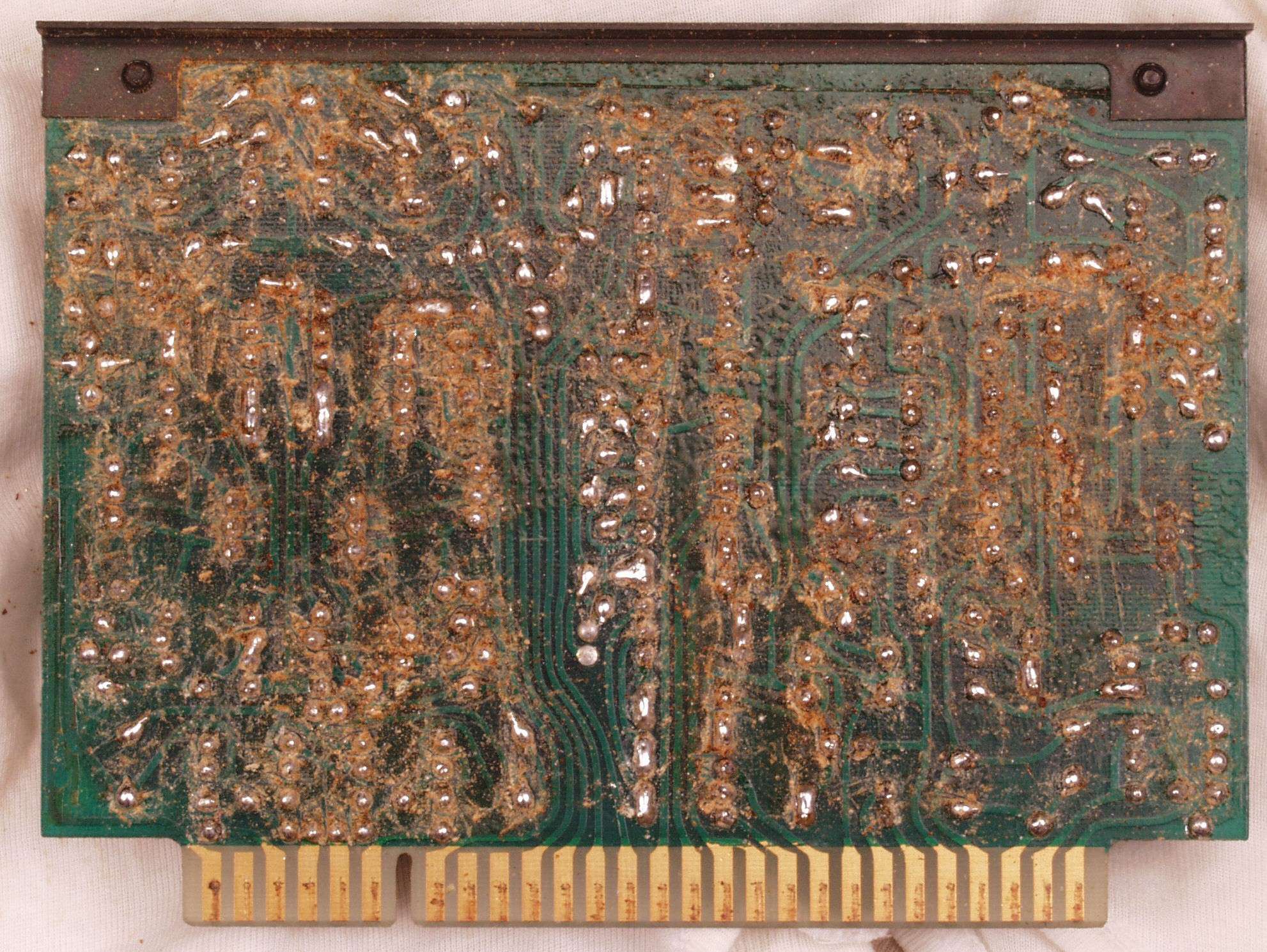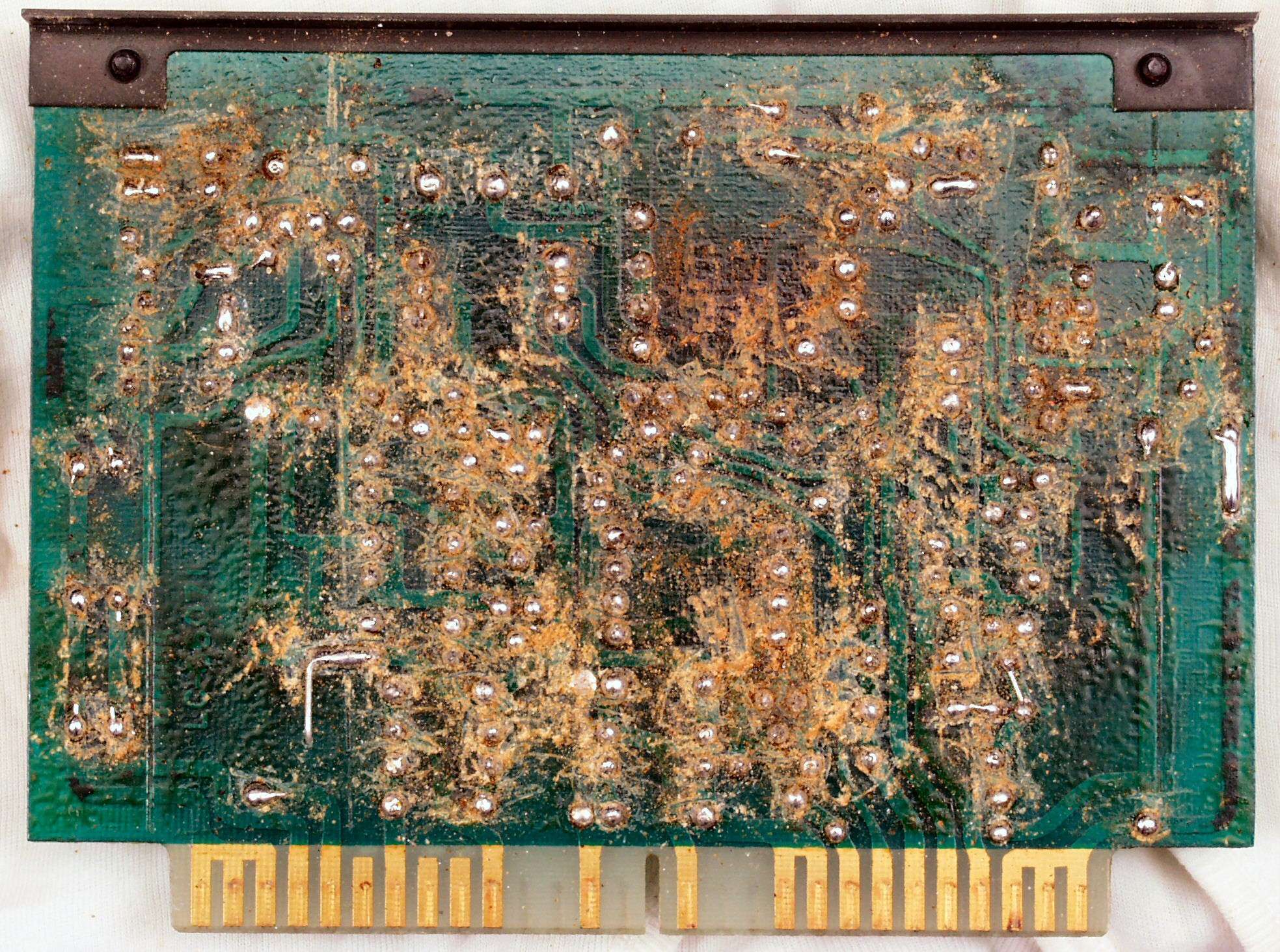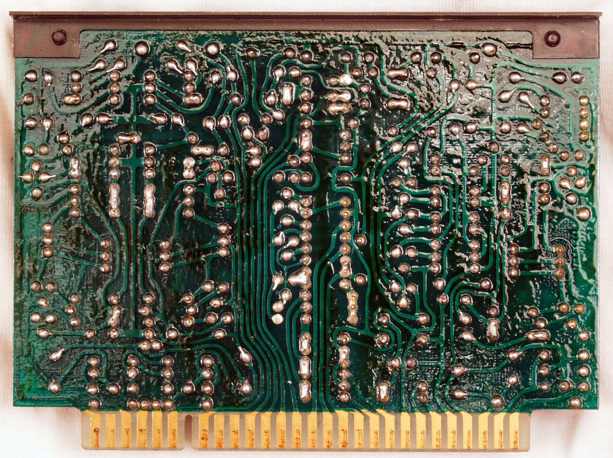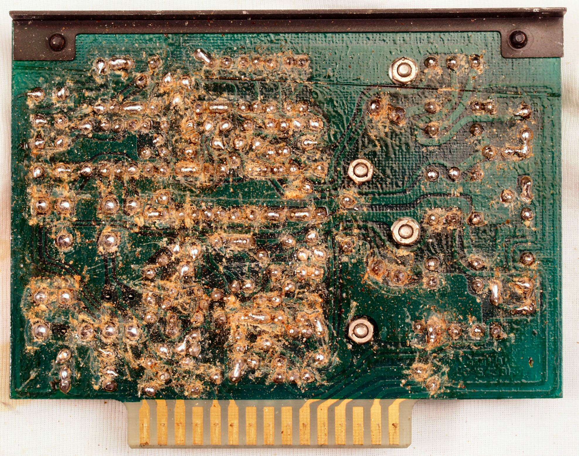 C2G. 修理(洗浄)後のドライブ基板コネクター足、上=前、下=後