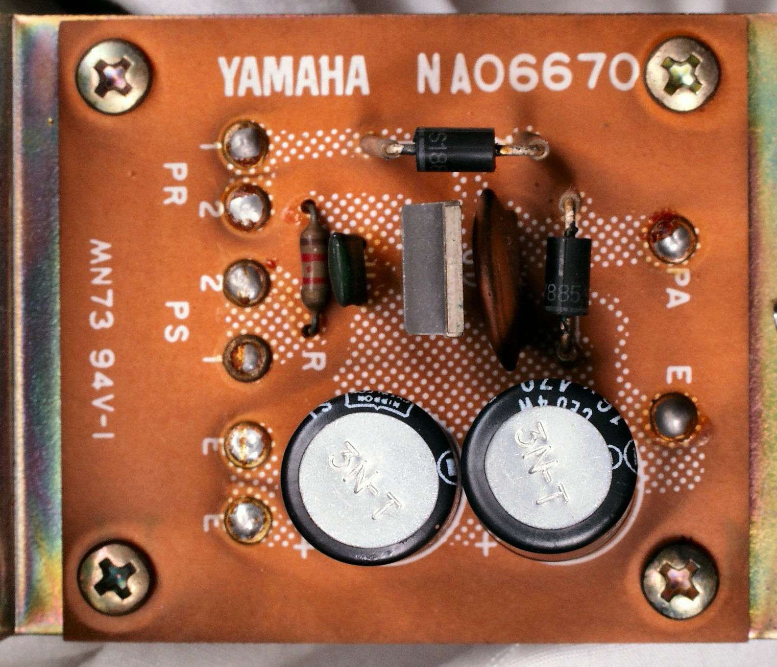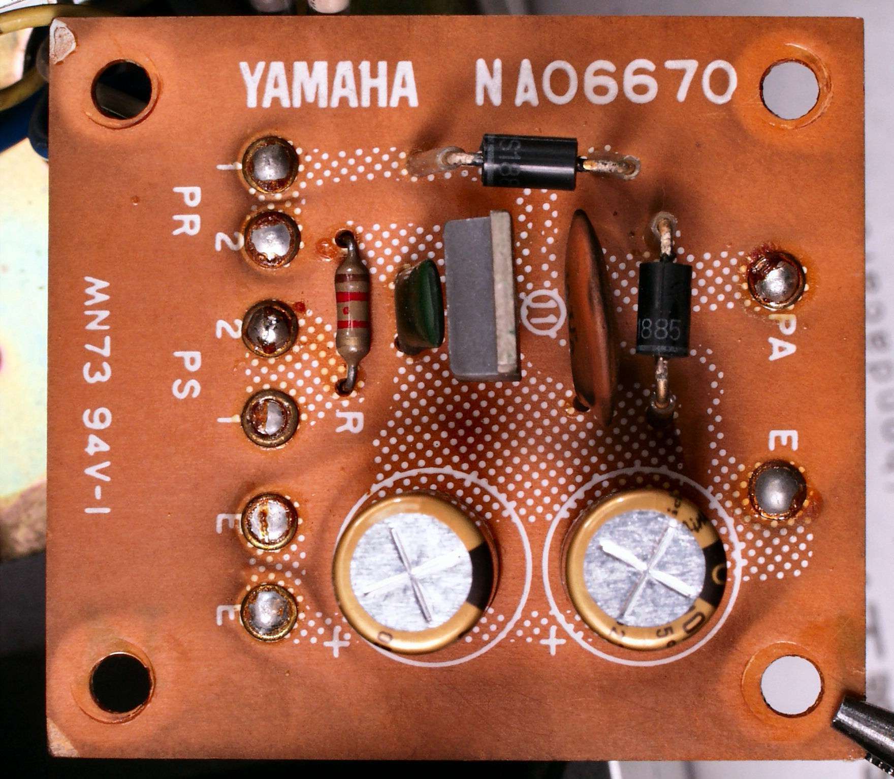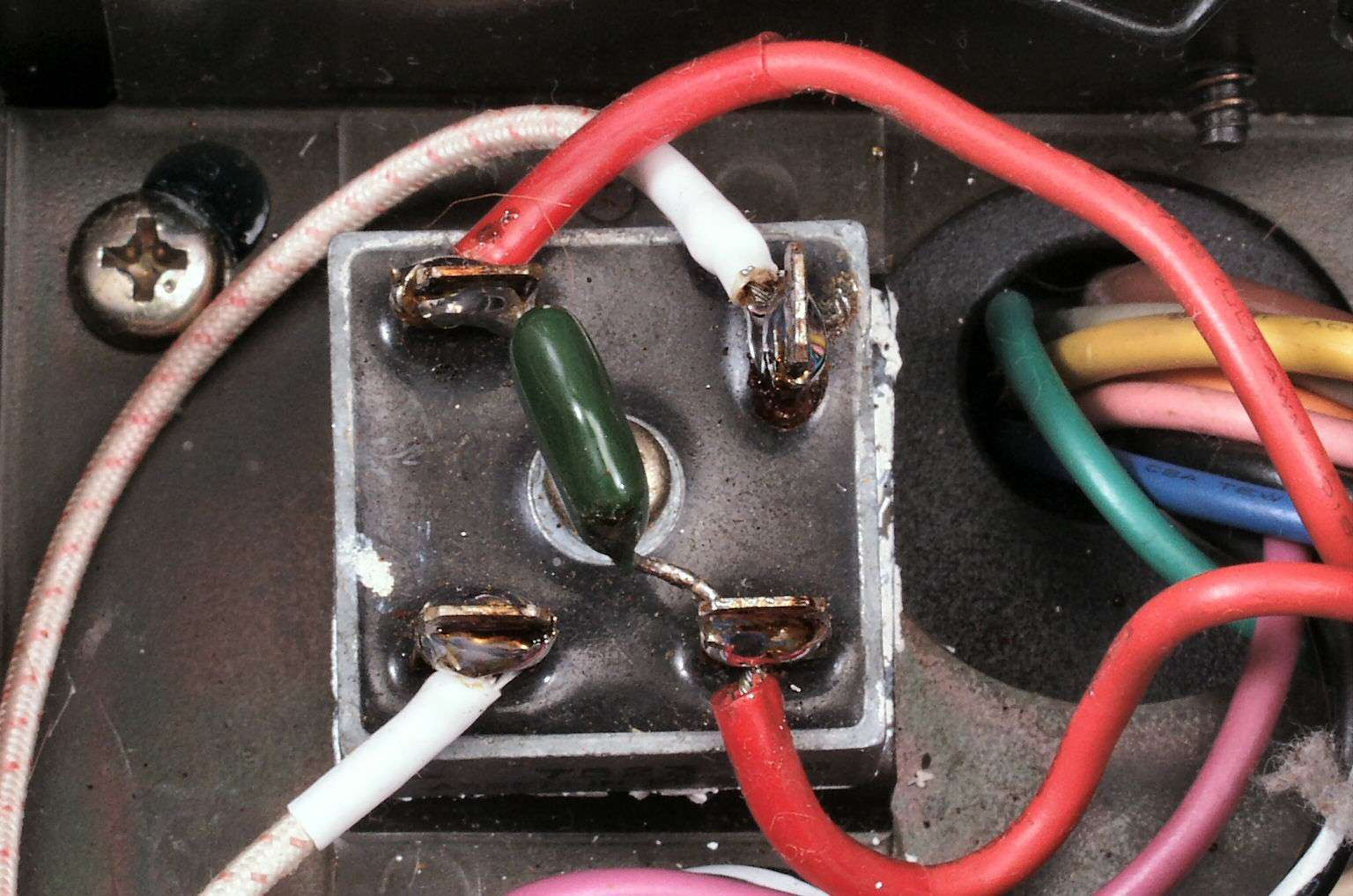 CDA. 修理前 R側整流ダイオードが交換されている、半田屑がそのまま!