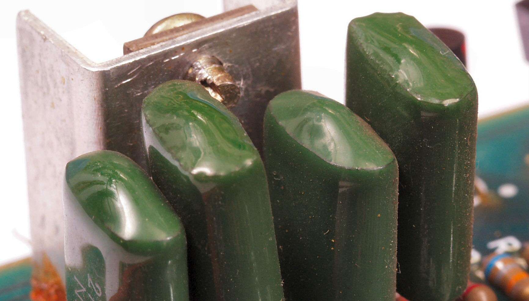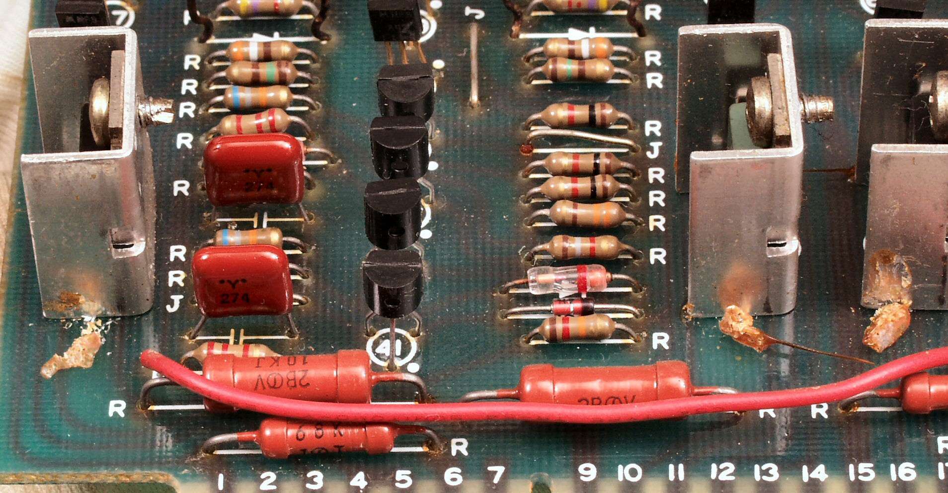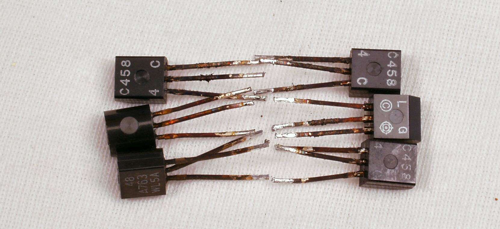 CFB. 交換したTR(トランジスター)、長年の使用で、足が腐食し、毛羽立っている
