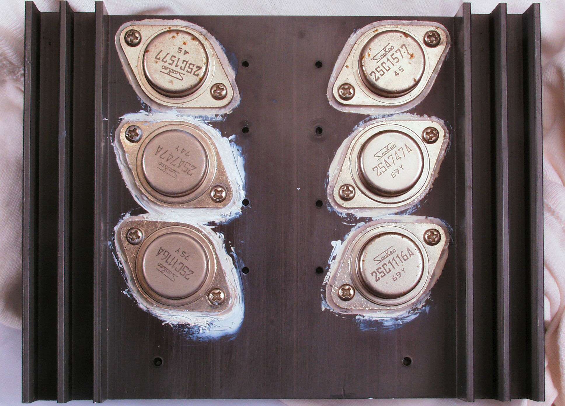 C7B. 修理後 電源出力TR基板 左側のTR(トランジスター)2個交換。 他は増締めしておく