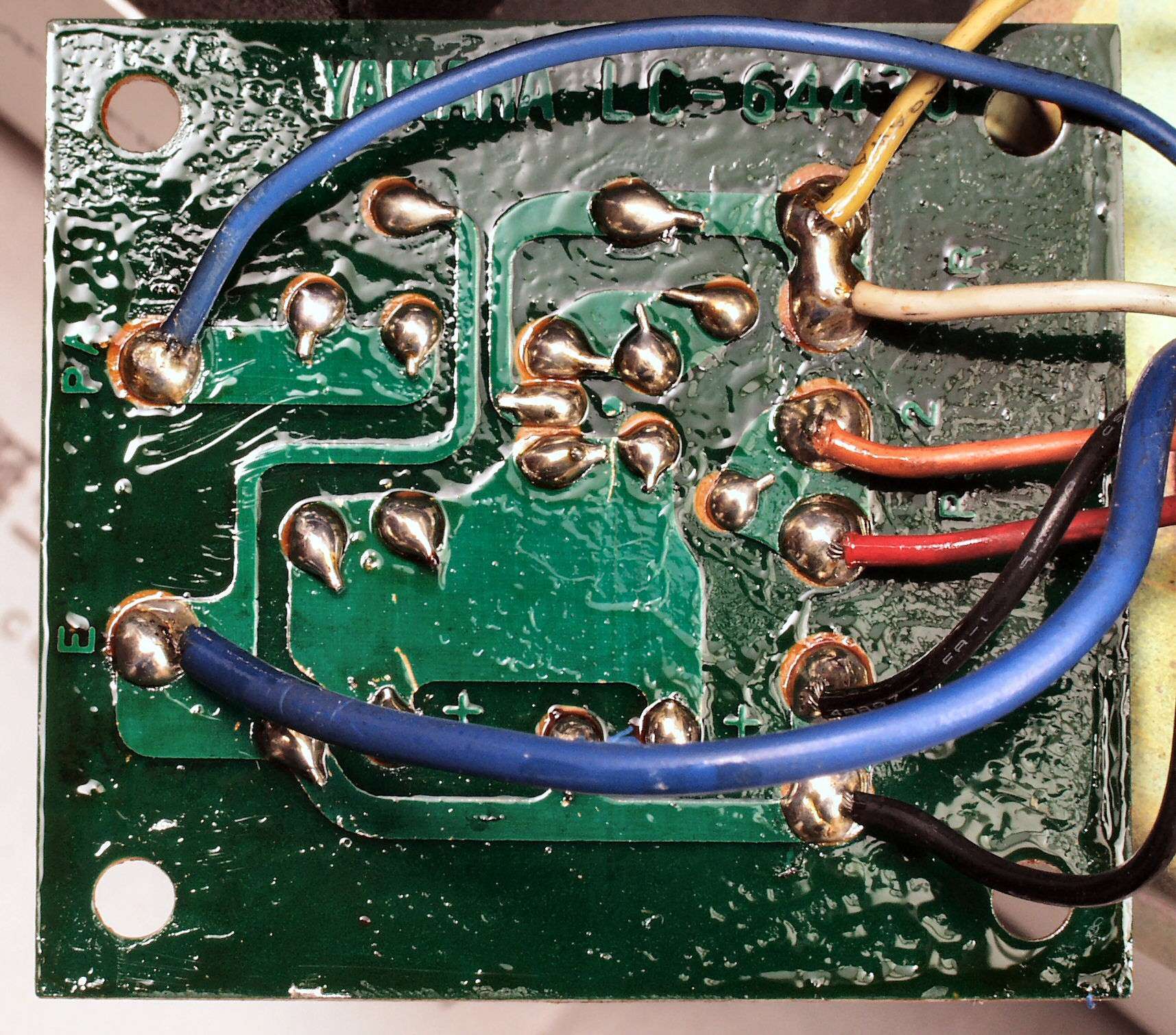 C2D. 修理(半田補正)後 L側ドライブ基板裏。 全ての半田をやり修す。