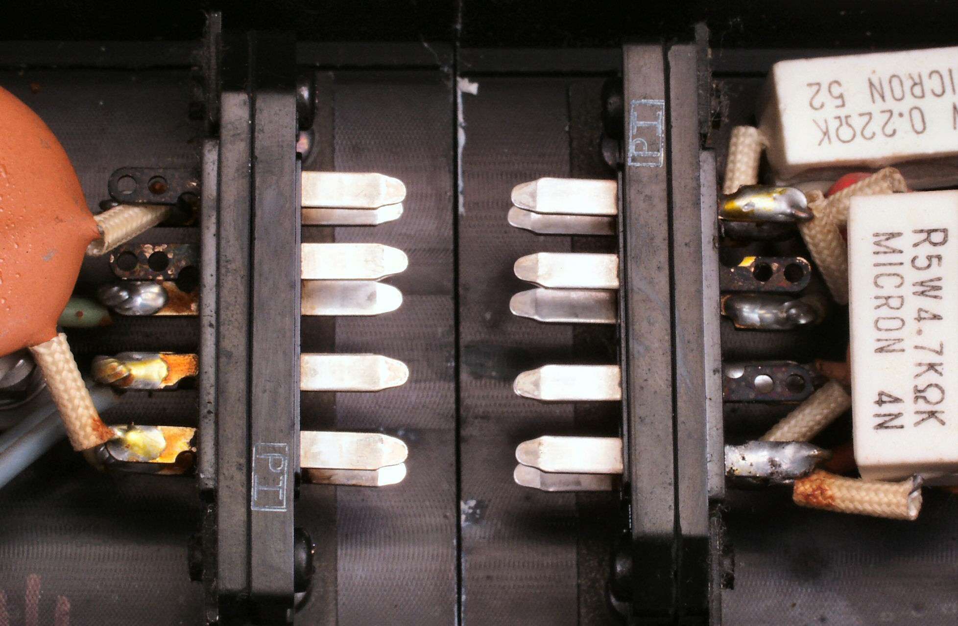 C8D. 修理(洗浄)後 R側終段出力FET(Field Effect Transistor)コネクター足