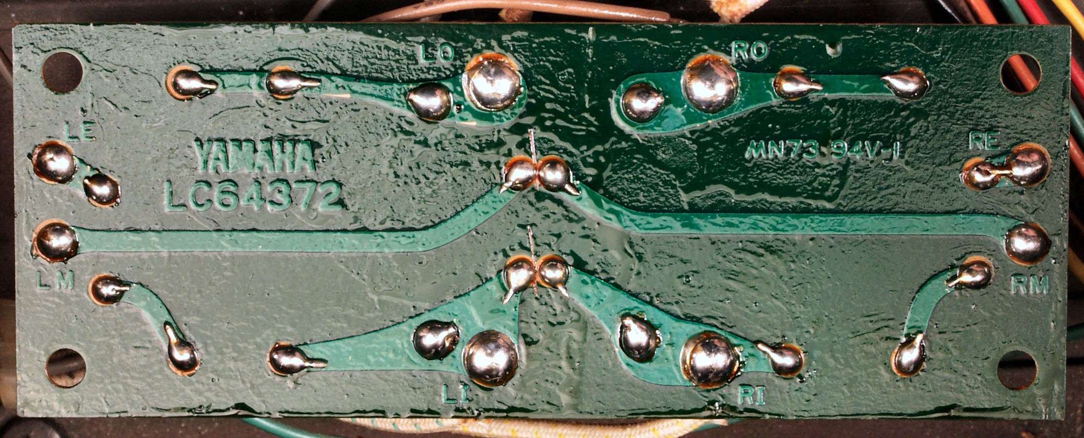 CBD. 修理(半田補正)後 RCA端子基板裏。 全ての半田をやり修す。