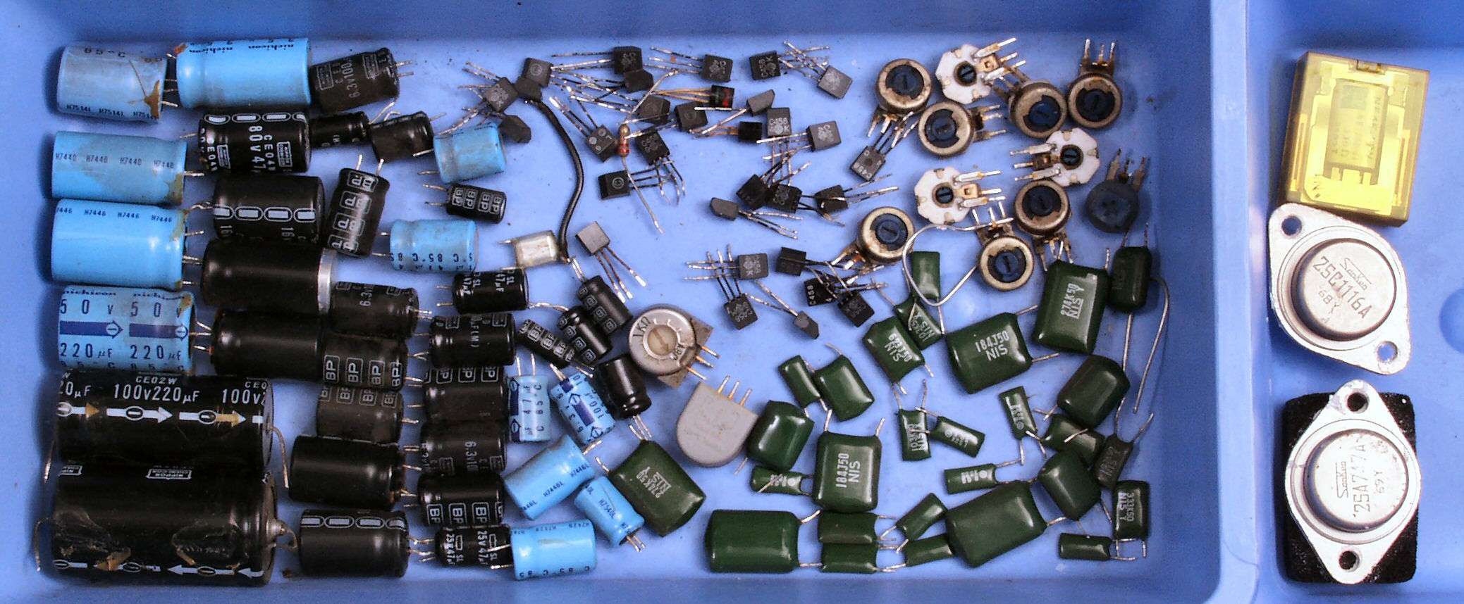 TR(トランジスター)=113個、 LED=3個、 ツェナーダイオード=7個、 ダイオード=64個