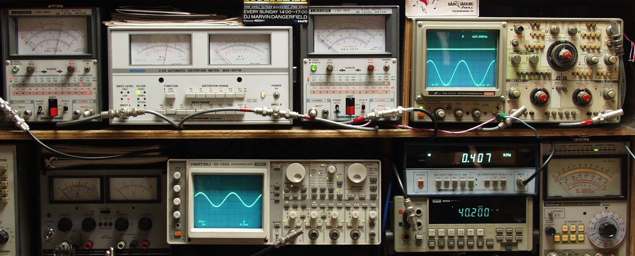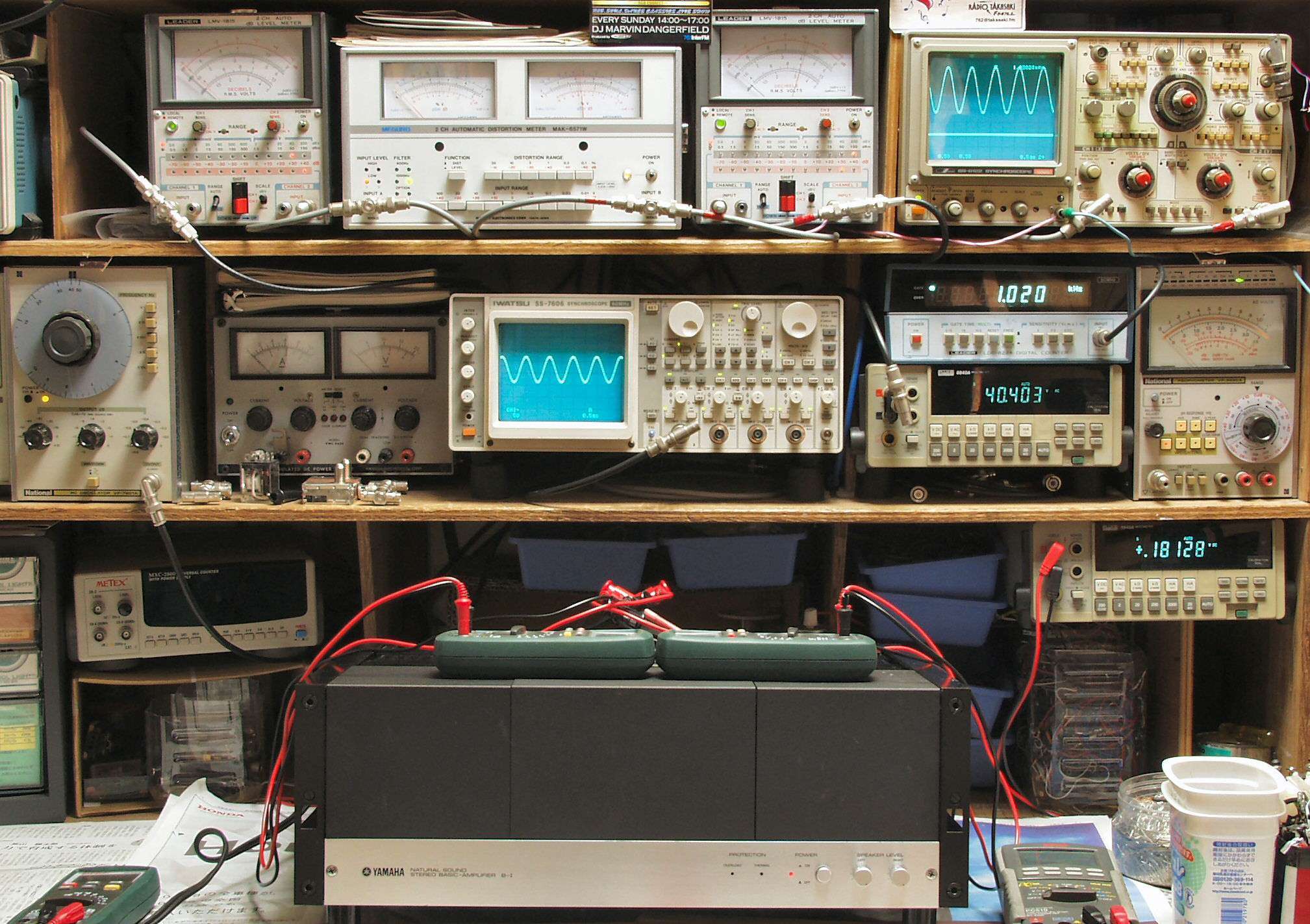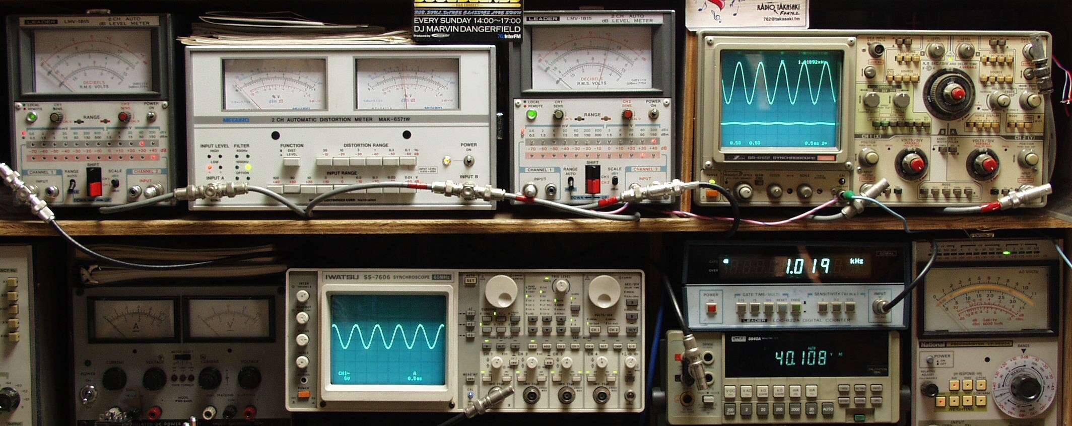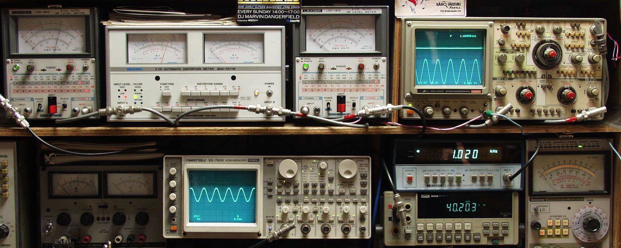 上中左歪み率計=SP出力の歪み率測定 左メータ=L出力、右メータ=R出力