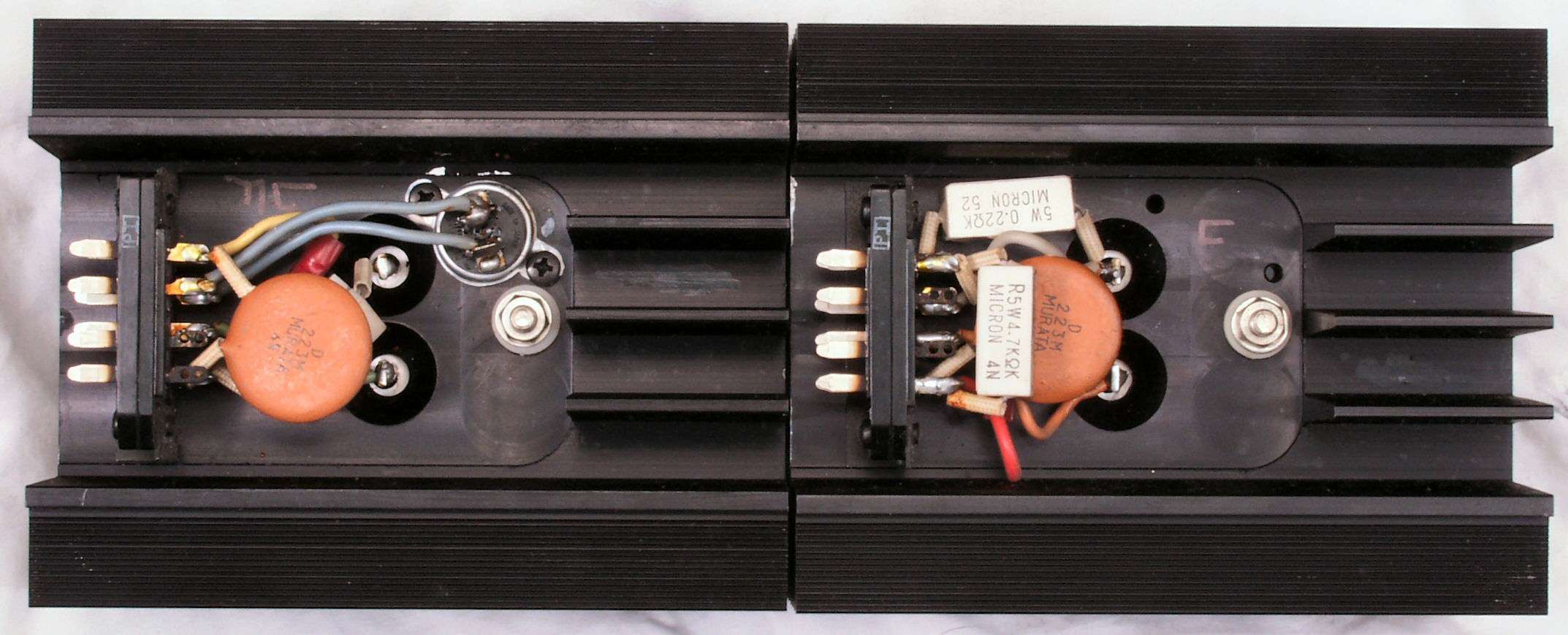 C8B. 修理前 R側終段出力FET(Field Effect Transistor)裏