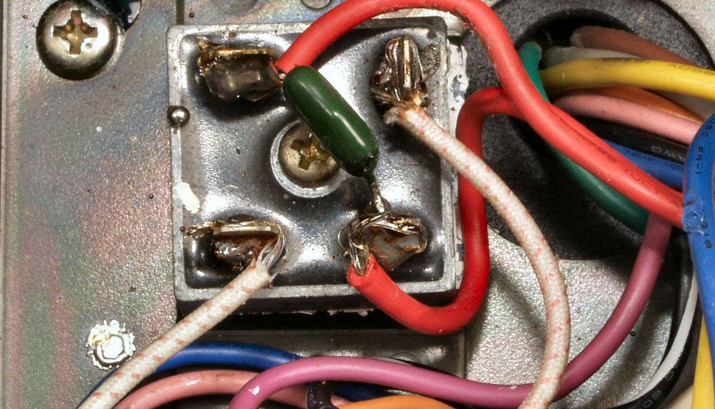 A3. 修理前見積り点検中、R側整流ダイオードが交換されている、半田屑がそのまま!