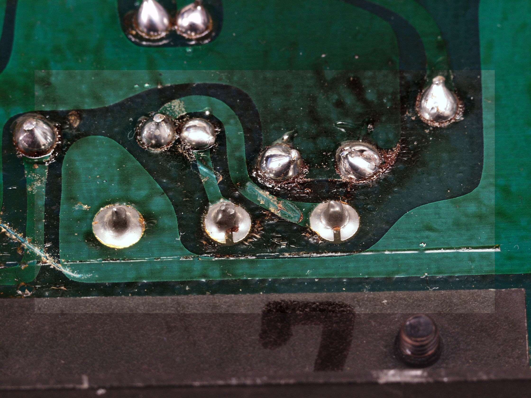 C2C1. 修理(半田補正)中 L側ドライブ基板裏 半田不良ケ所
