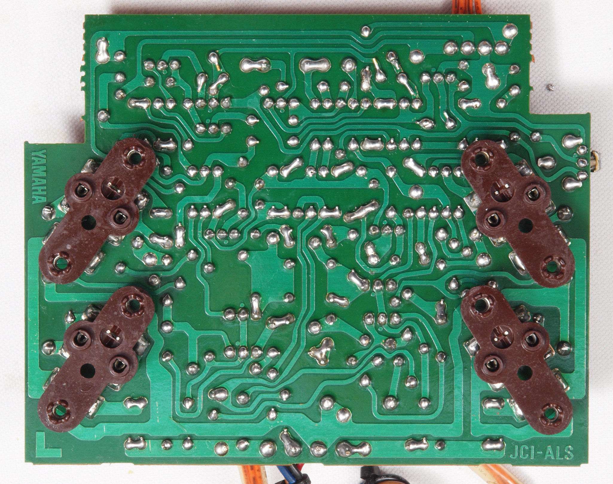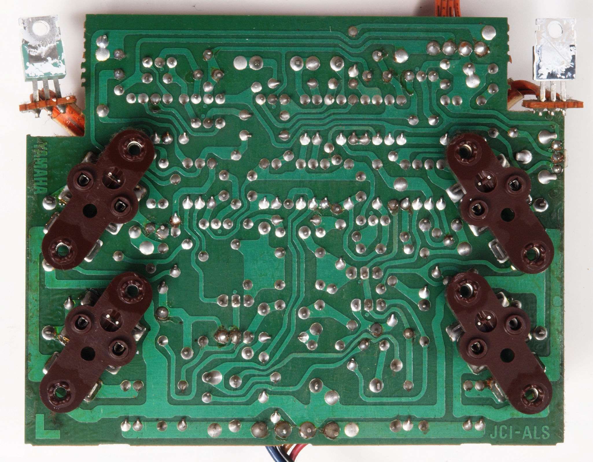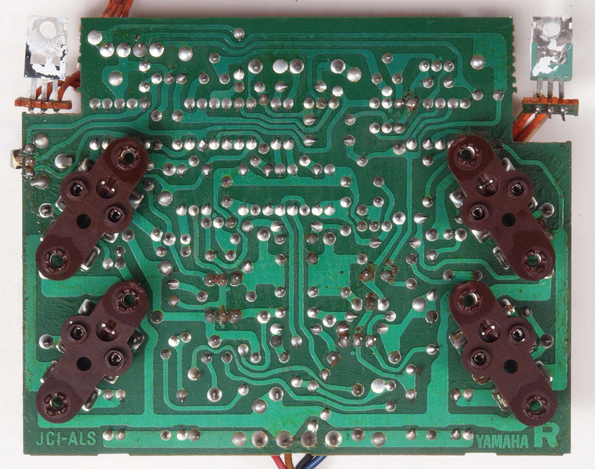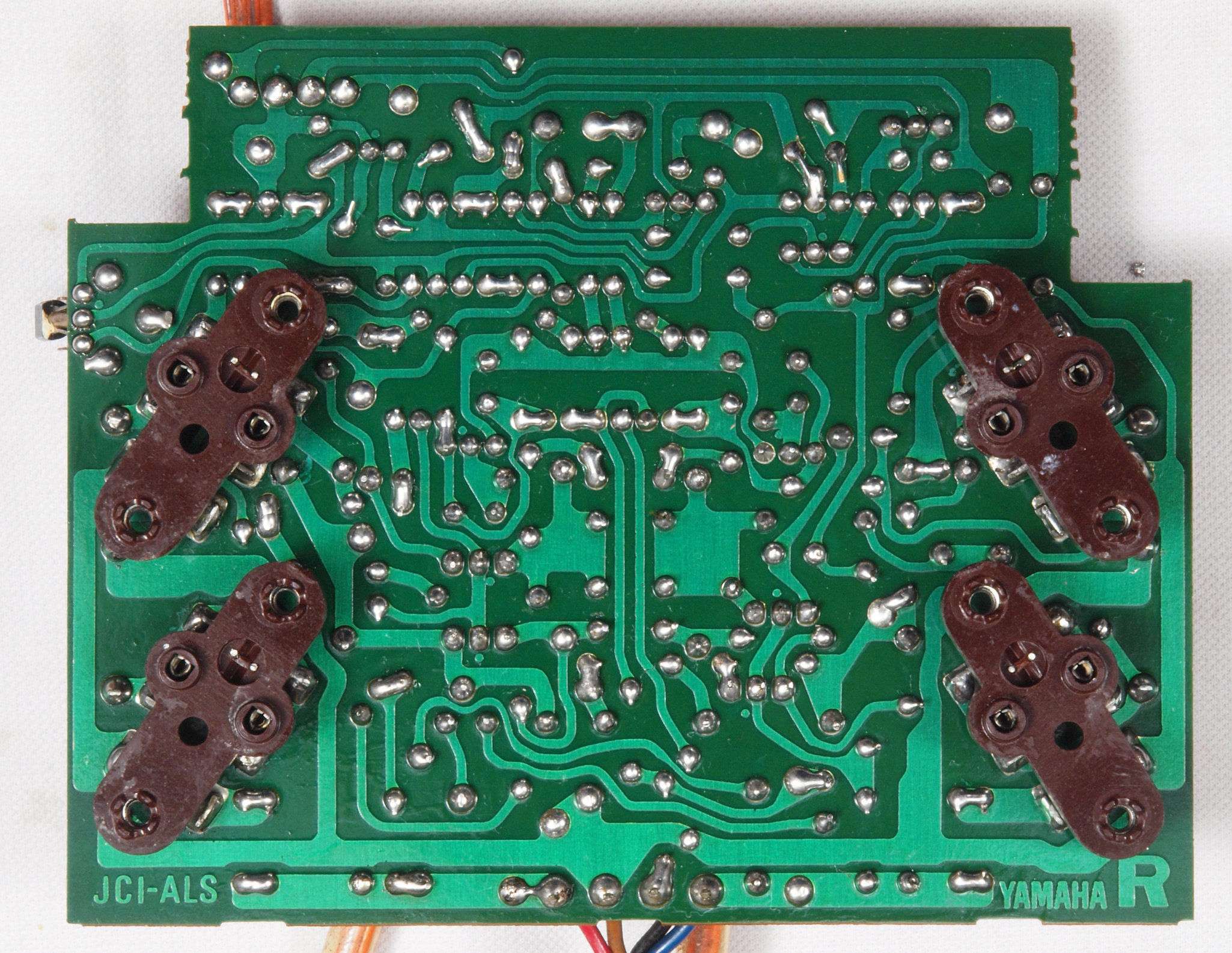 C74. 修理(半田補正)後 RCA端子基板裏 & VR基板裏。 全半田やり直しする。 入力VR2個交換。