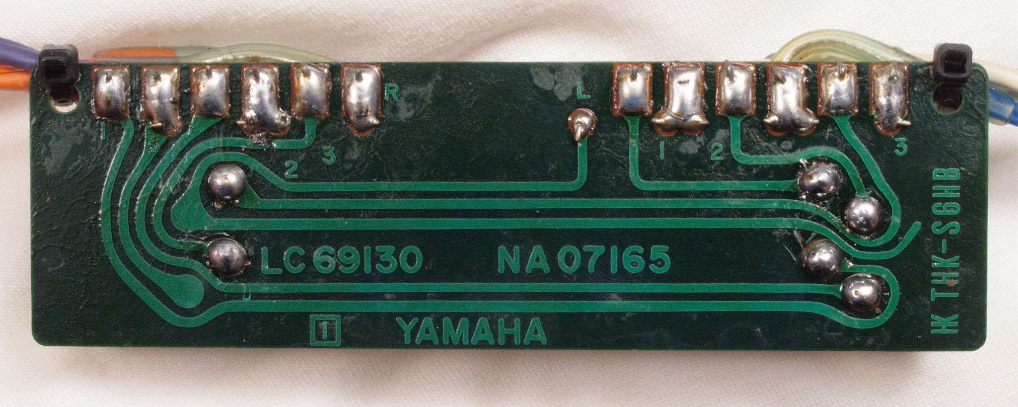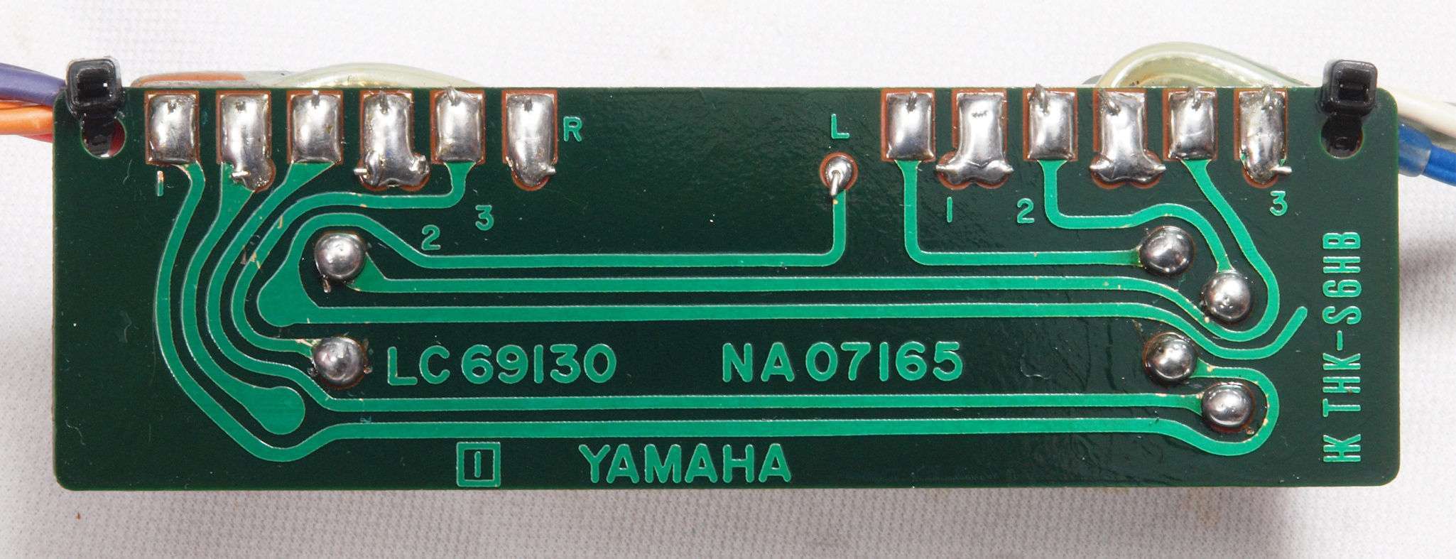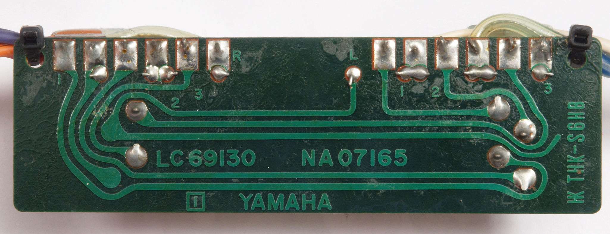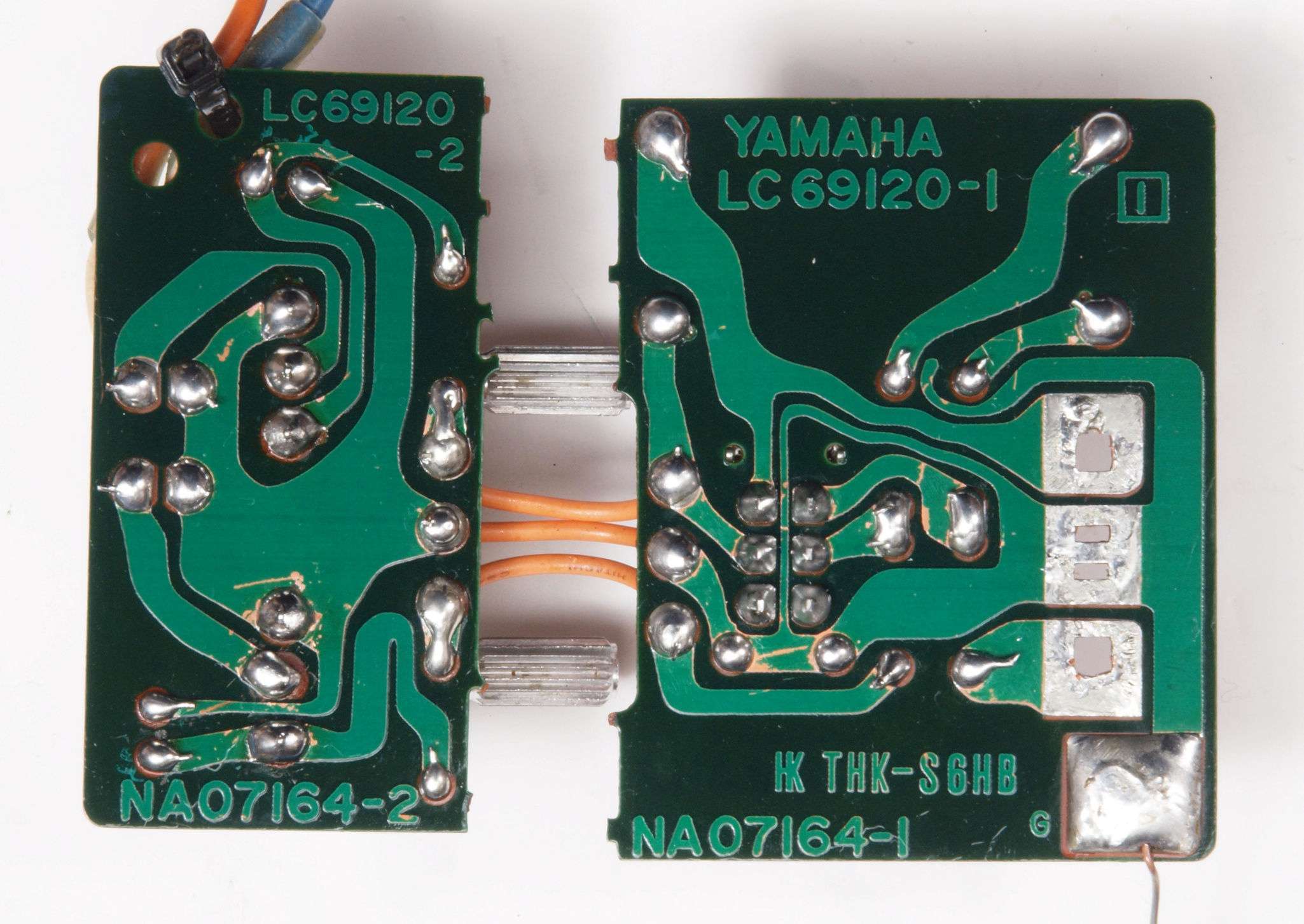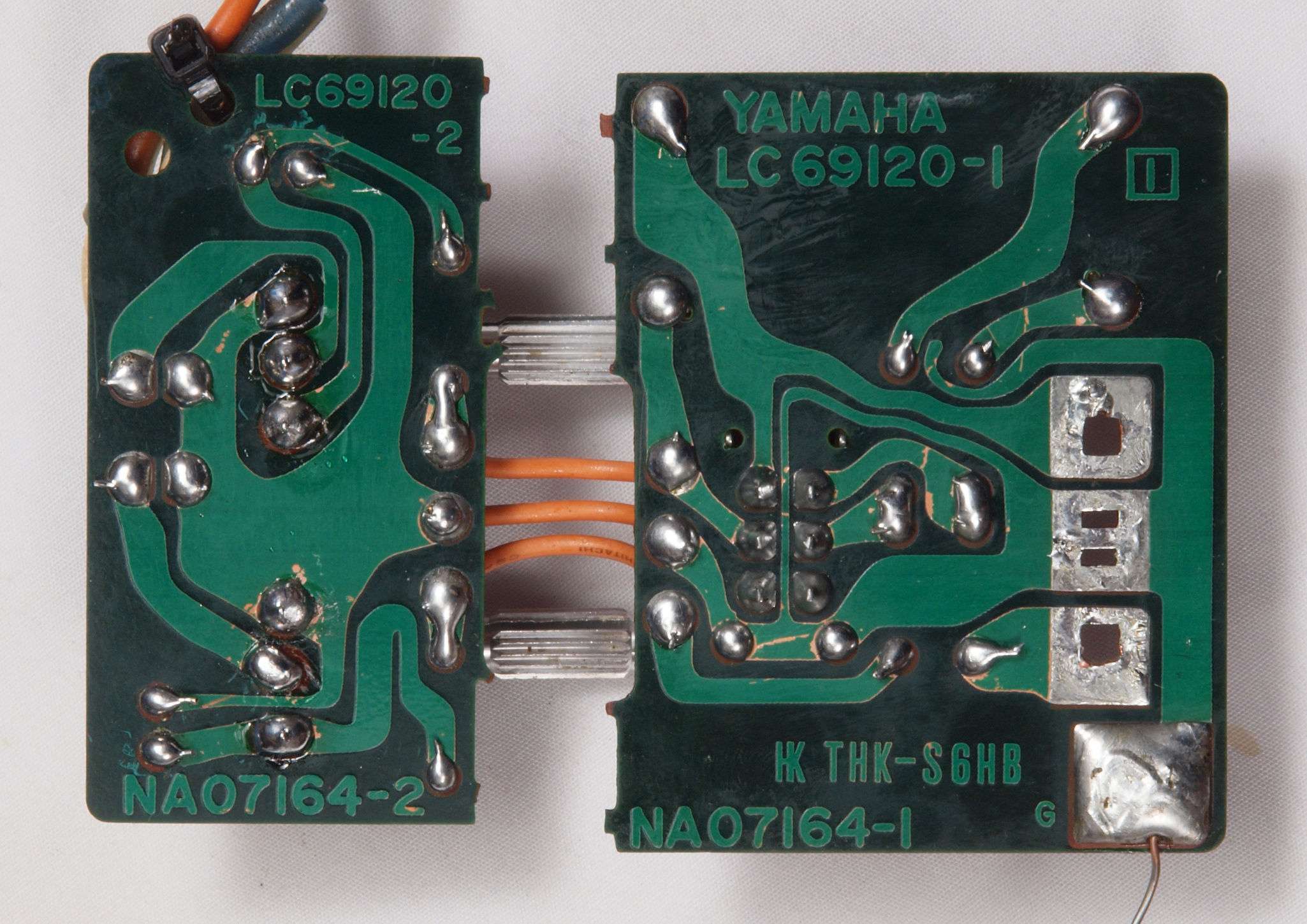 C74. 修理(半田補正)後 RCA端子基板裏 & VR基板裏。 全半田やり直しする。 入力VR2個交換。