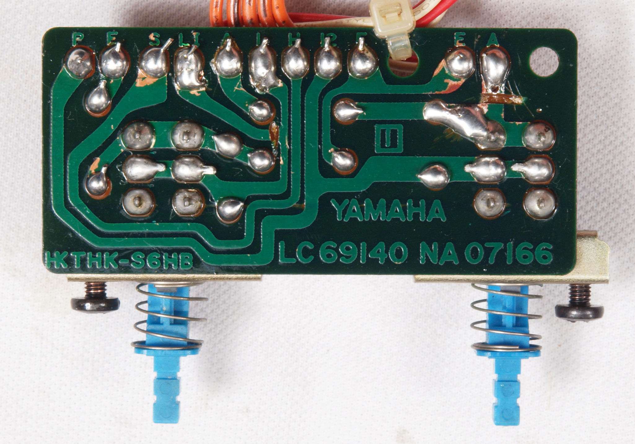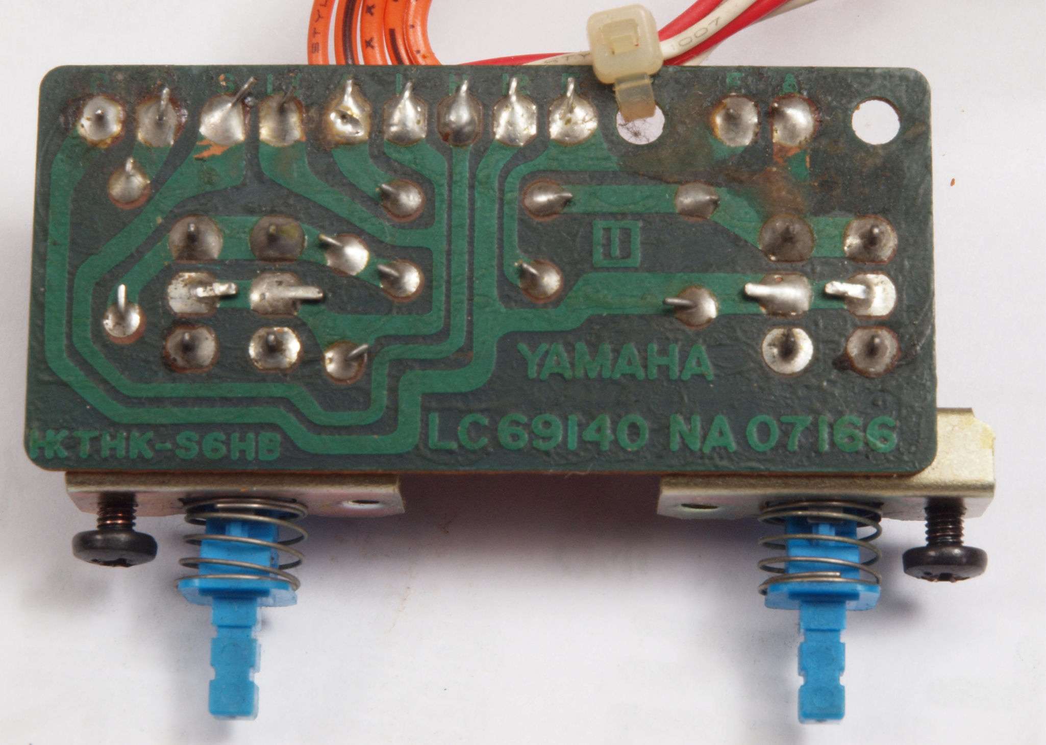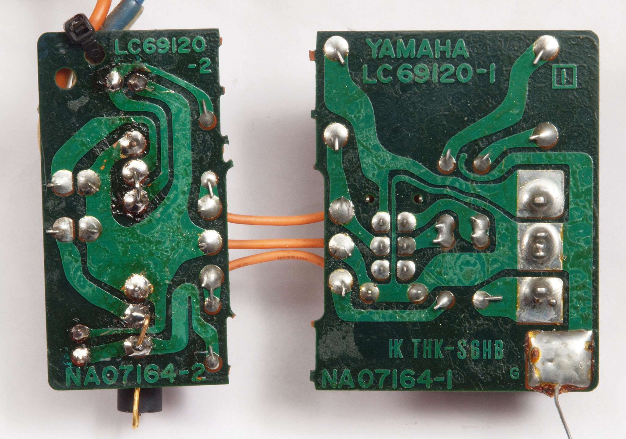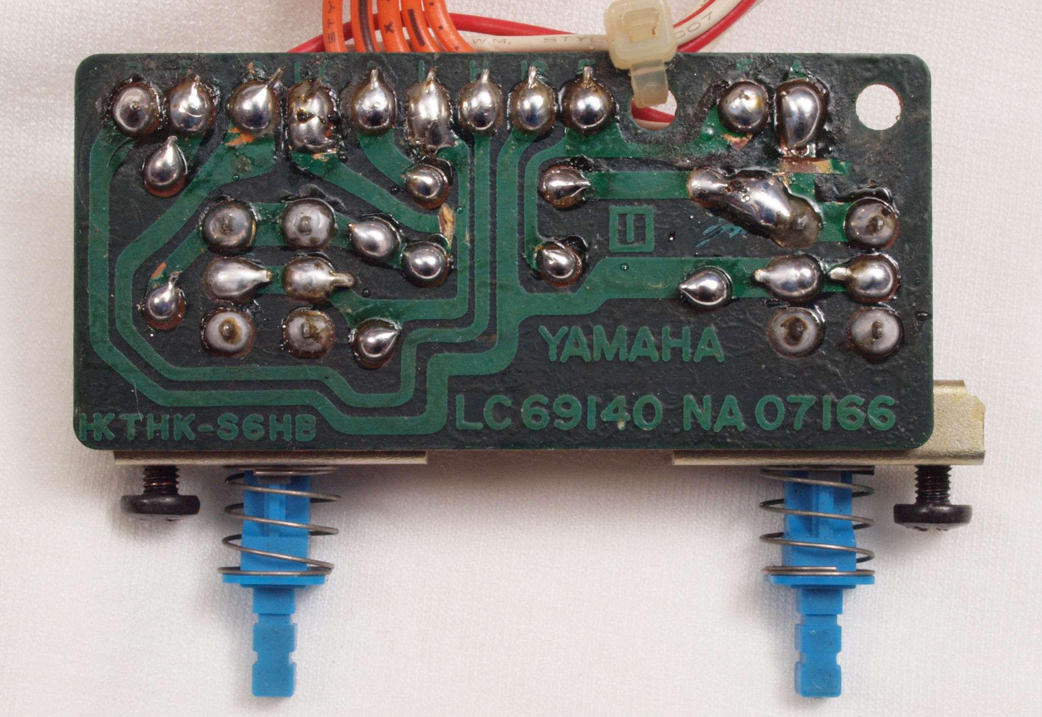 C74. 修理(半田補正)後 RCA端子基板裏 & VR基板裏。 全半田やり直しする。 入力VR2個交換。