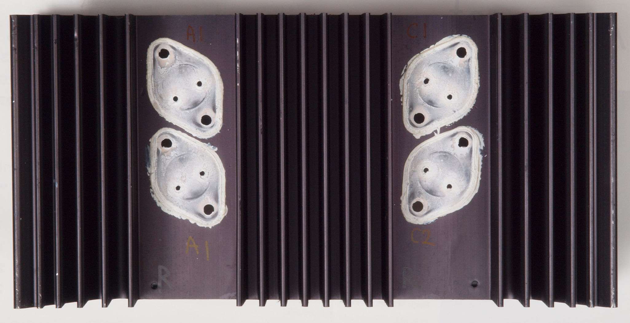 C62. 修理中 L側終段TR(トランジスター)のマイカー。 シリコンは柔らかい。