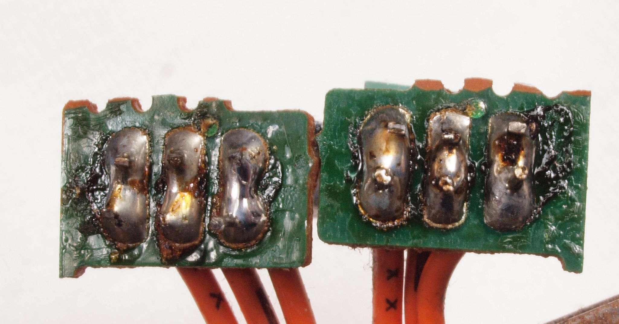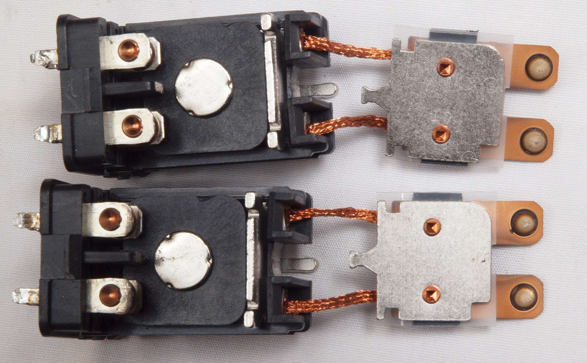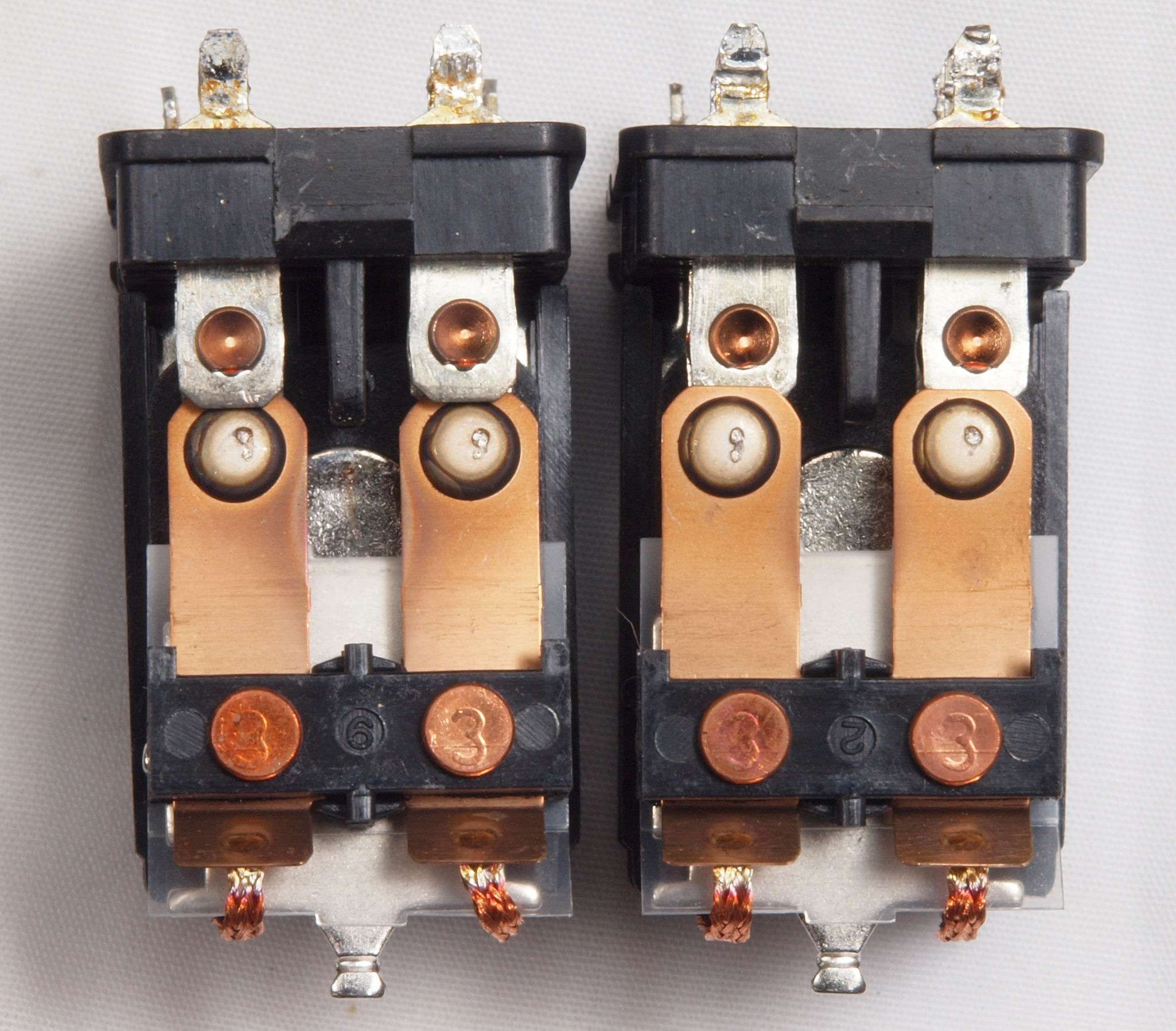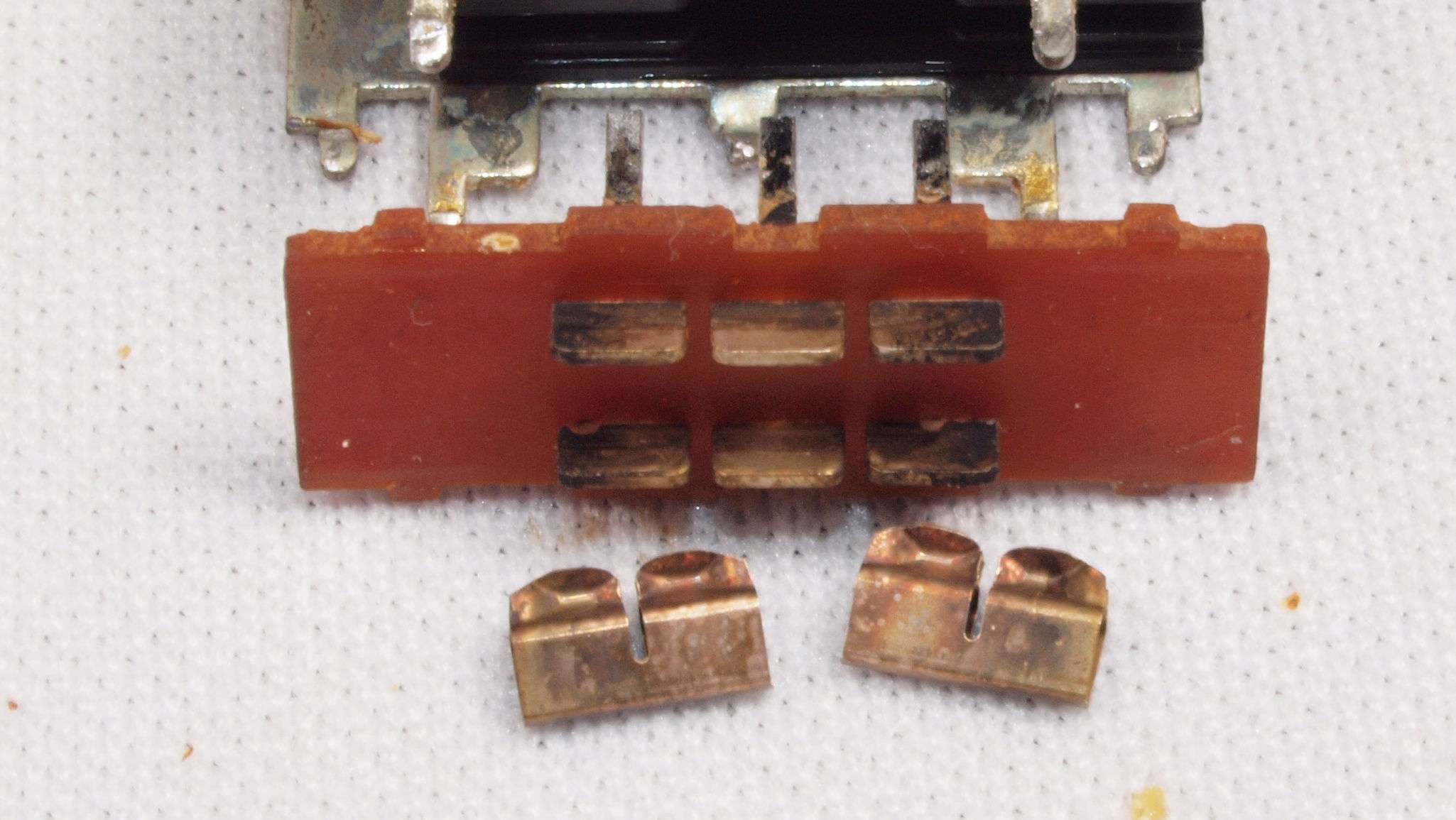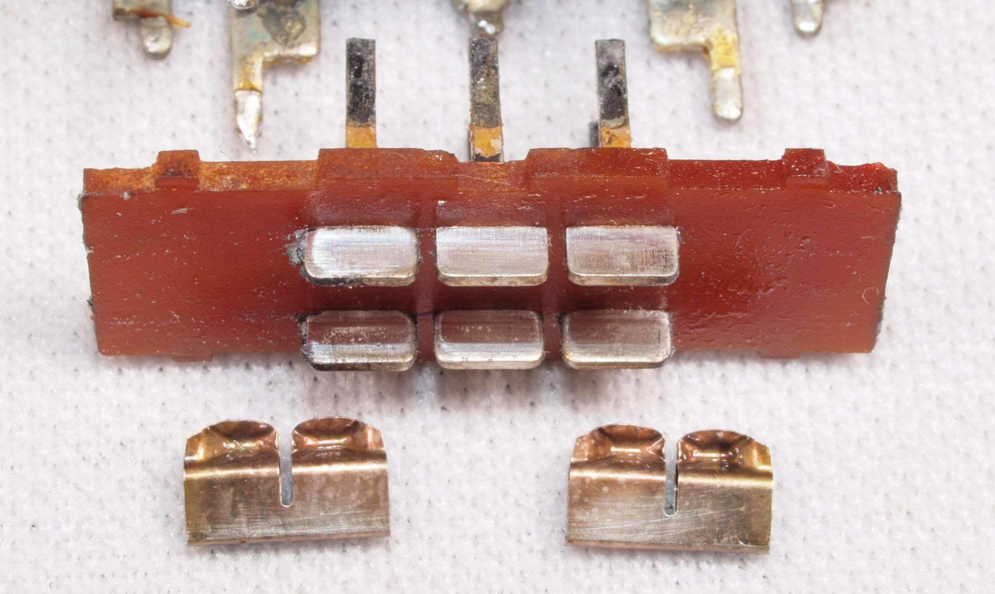 可動片まで焼けて色が変わっている、よって接点のみ磨いてもNGだし、手間が高く付くだけ!