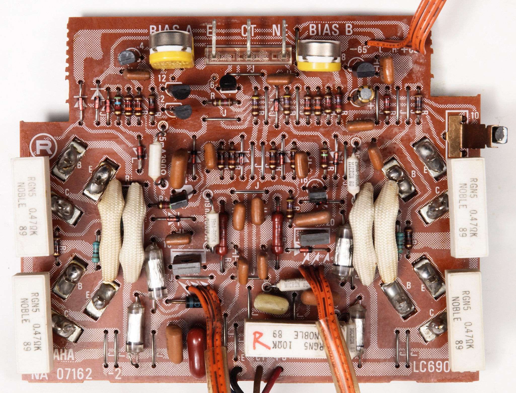 C12. 修理後 R側-AMP基板 半固定VR4個、電解コンデンサー9個、FET(Field Effect Transistor)3個交換