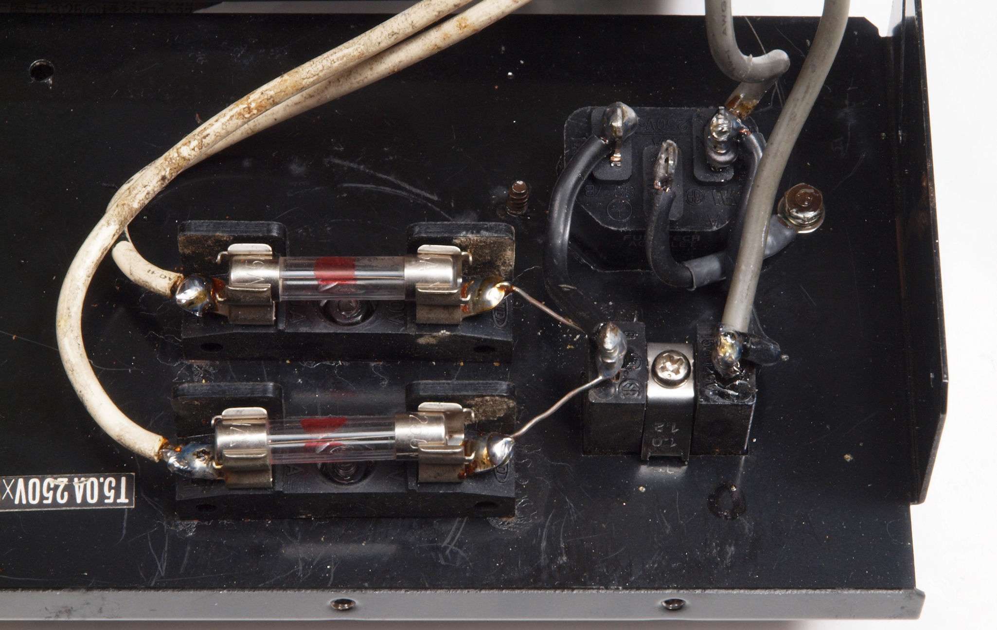 CD1. 修理前 SP接続端子 電源コード取付け部。