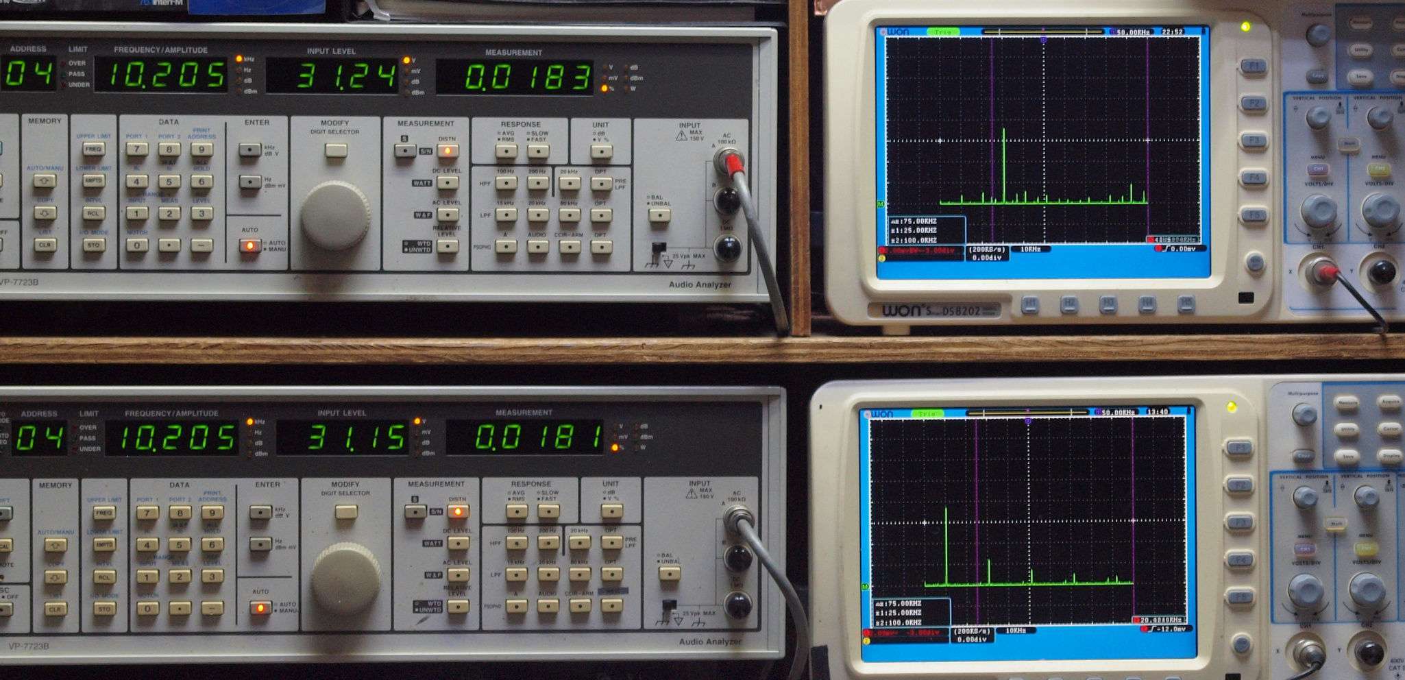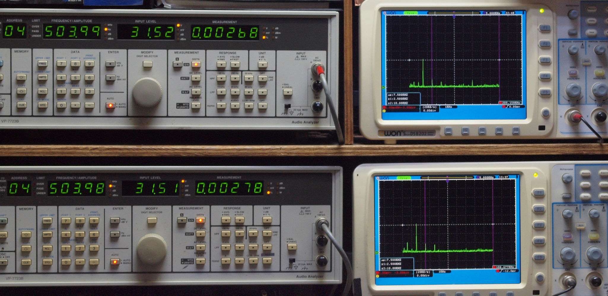 よって、ダイアル設定出力レベルより低なります。測定機器の仕様や整備の様子はこちら、「VP−7723B」「VP−7201A」。 FFT画面の見方はこちら。