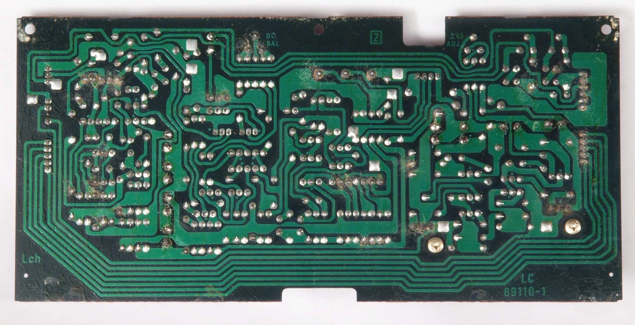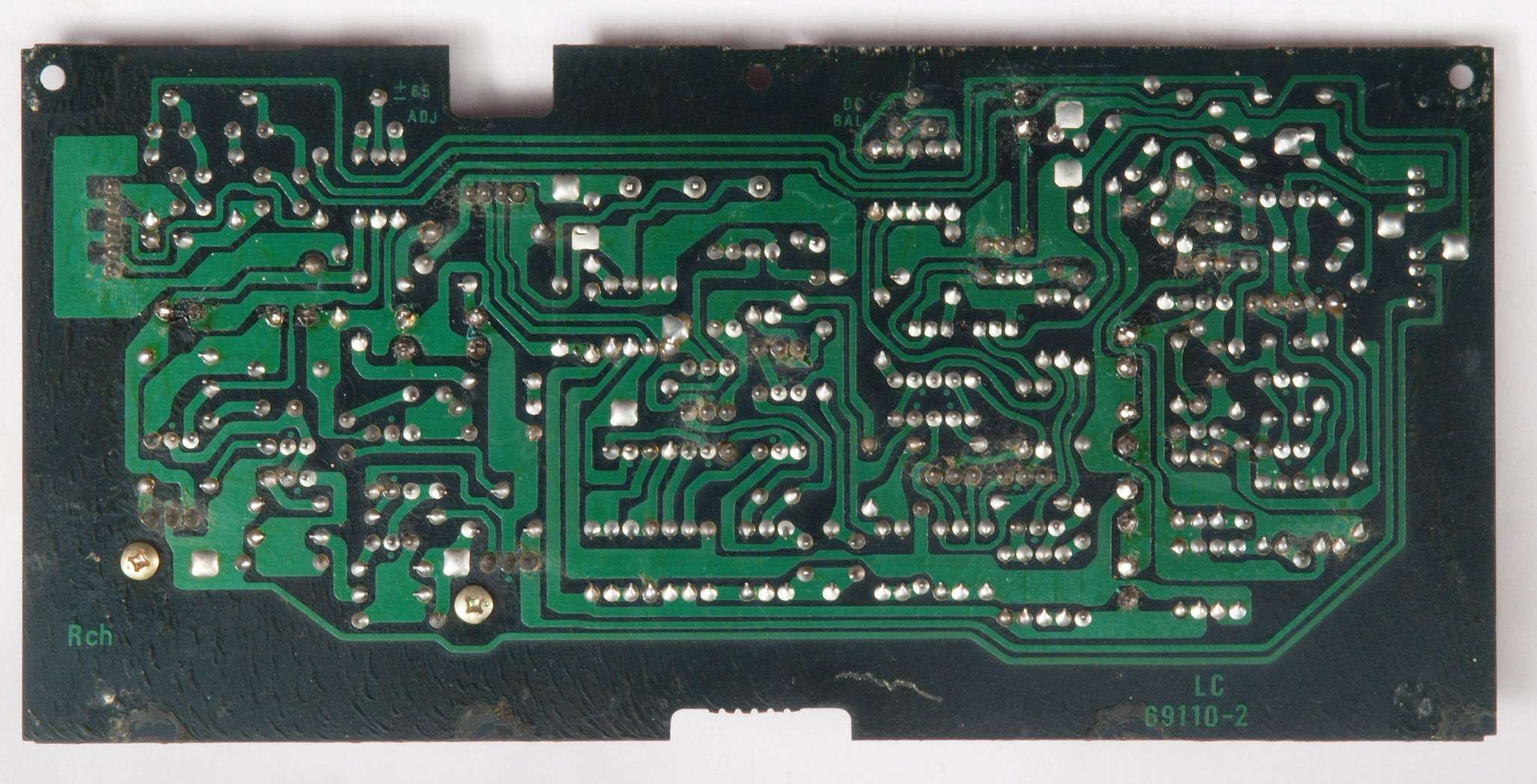C37. 修理(半田補正)後 R側-終段SUB基板裏。 全半田やり直しする。