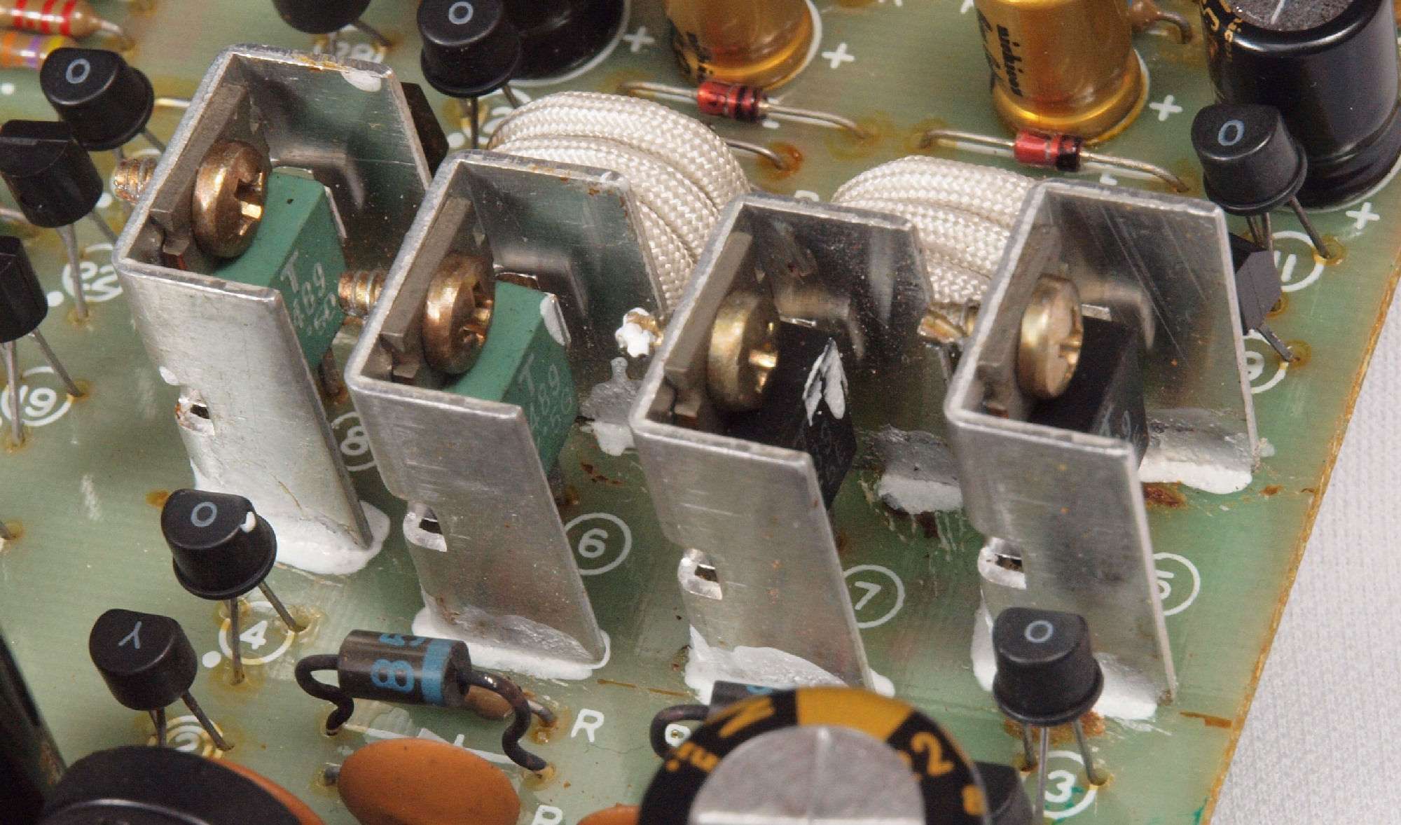 C512. 修理前 電源2基板、TR(トランジスター)の放熱器。