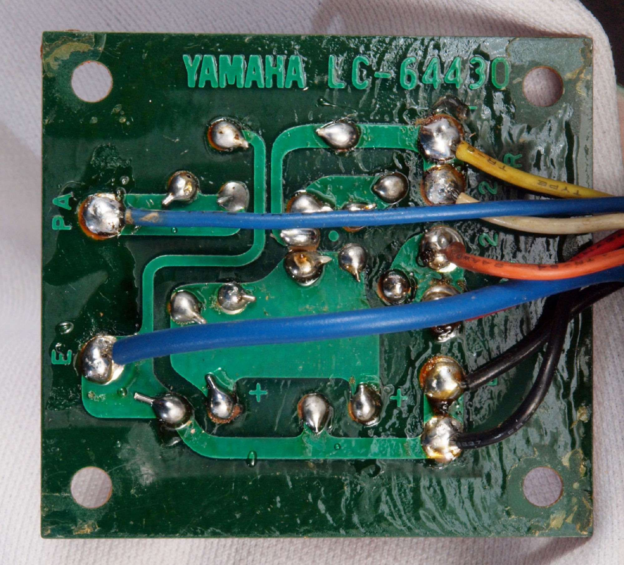 C14. 修理(半田補正)後 R側ドライブ基板裏。 全ての半田をやり修す。