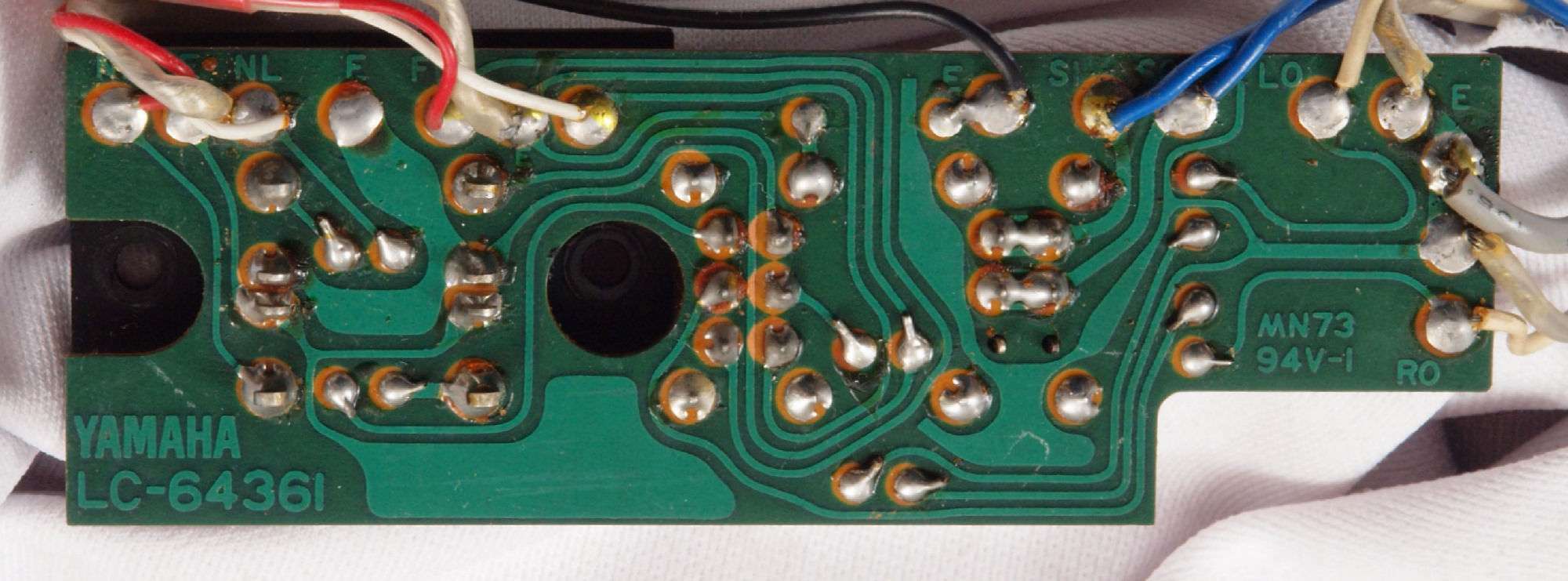 CG1. 修理前 前パネルVR・電源SW基板裏