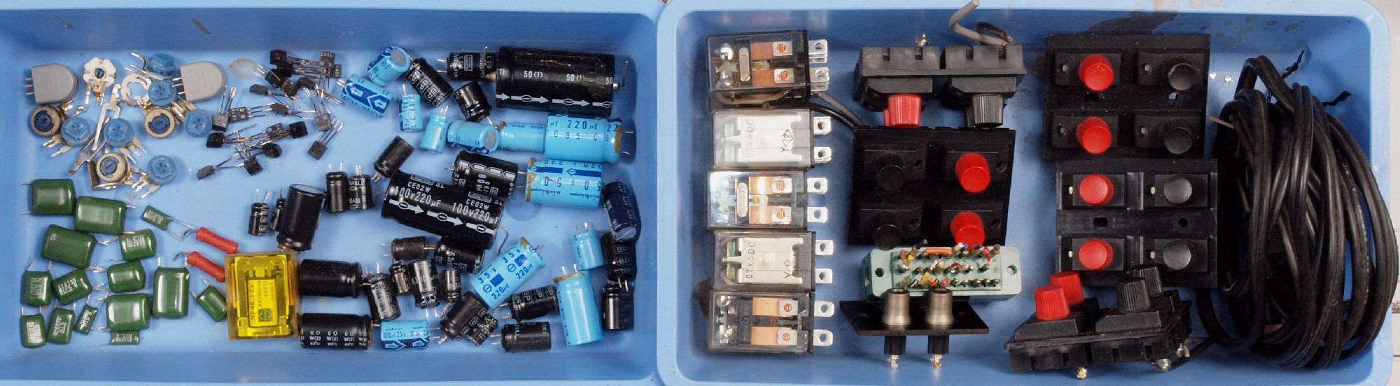 TR(トランジスター)=113個、 LED=3個、 ツェナーダイオード=7個、 ダイオード=64個