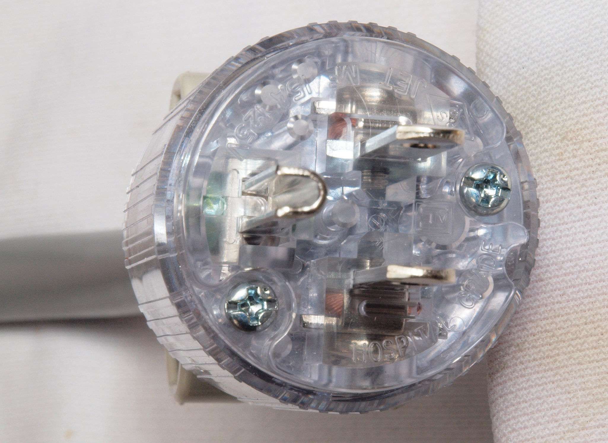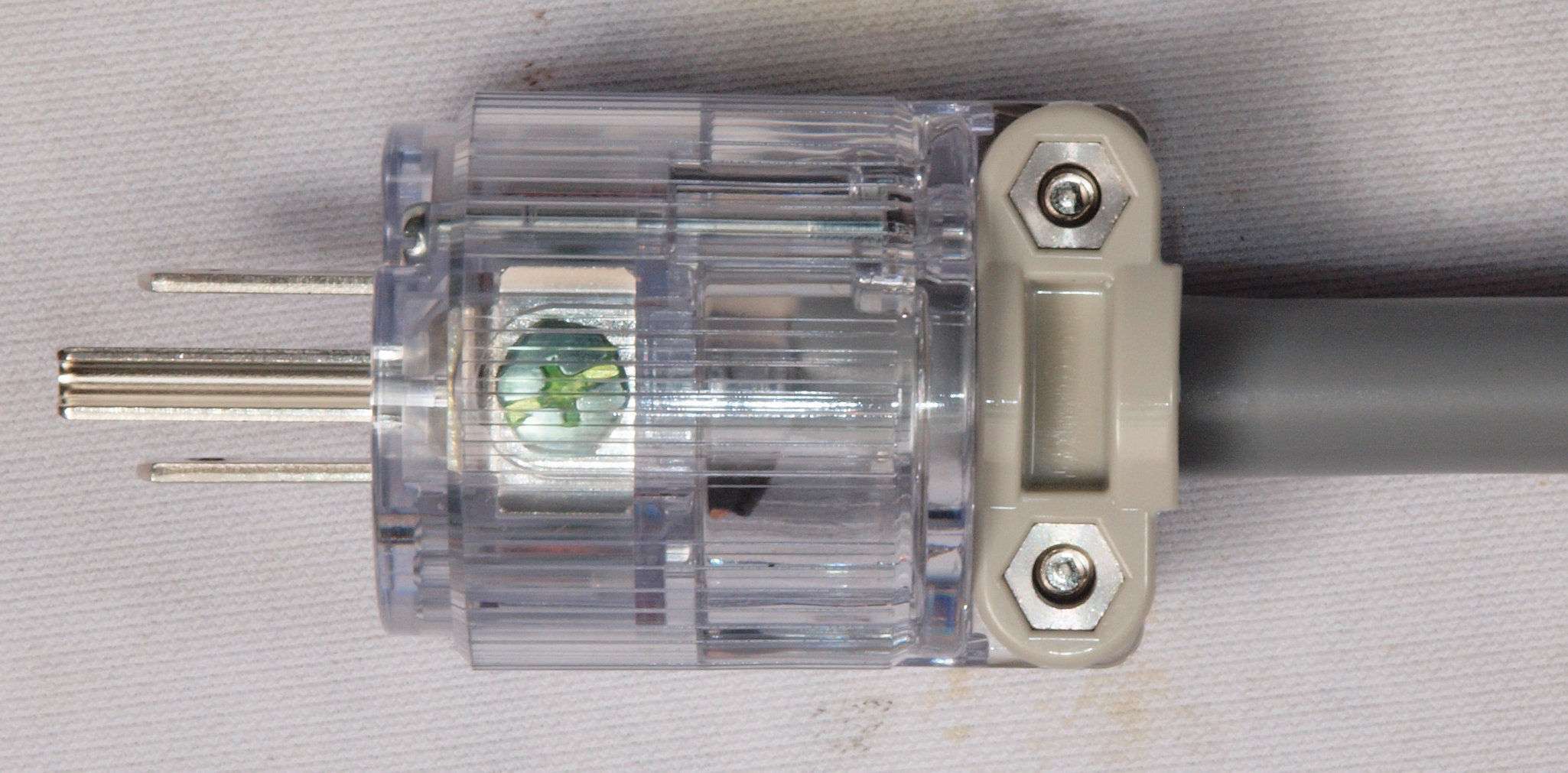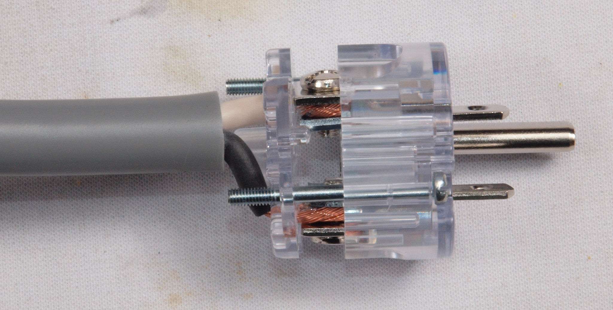 CF6. 完成 3Pプラグにケーブル取り付、反対側。 奥までしっかり芯線が入っている。