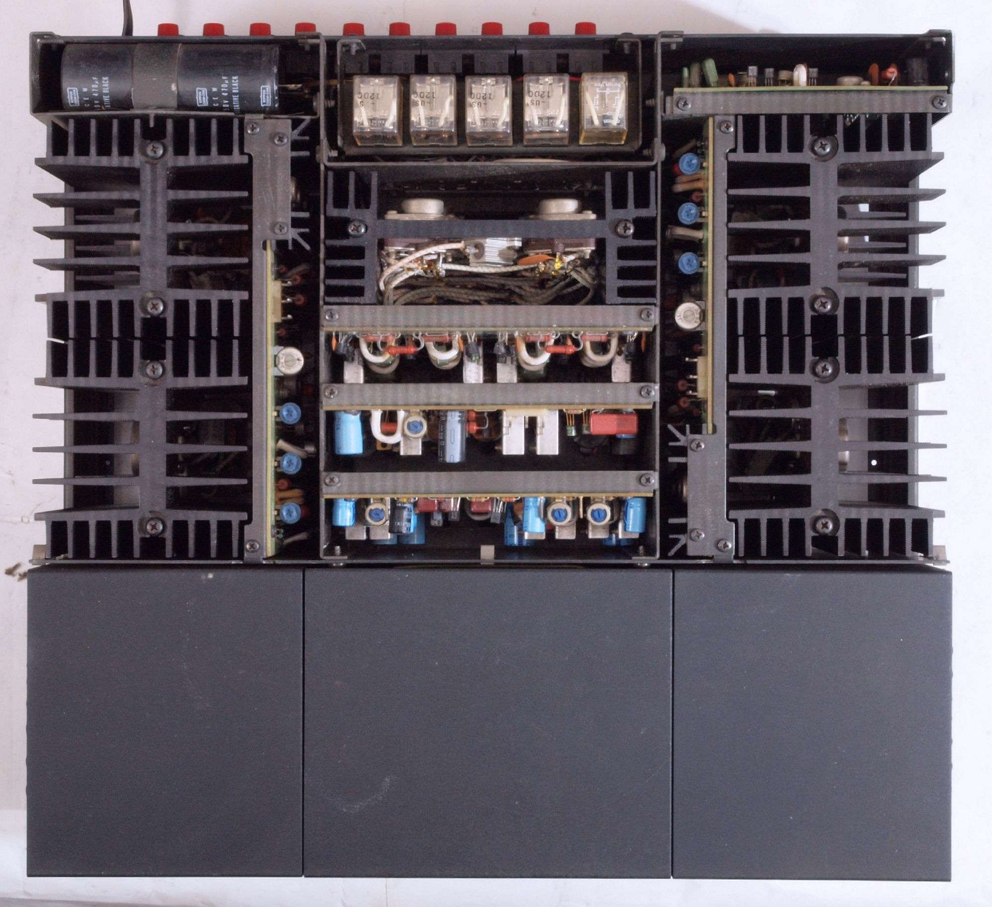 パワー段用電源 L・R独立のトランス及びケミコン(15,000μF×2)×両ch