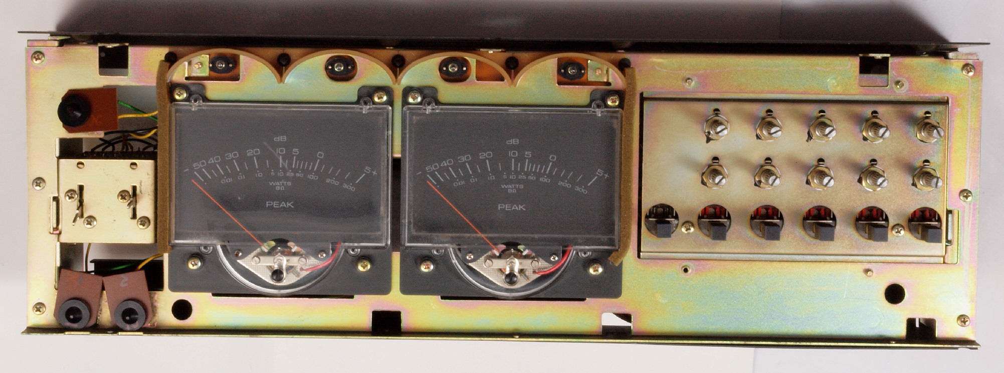ピークメーター部 −50dB〜+5dBまで表示するピークVUメーターとメータードライブ回路