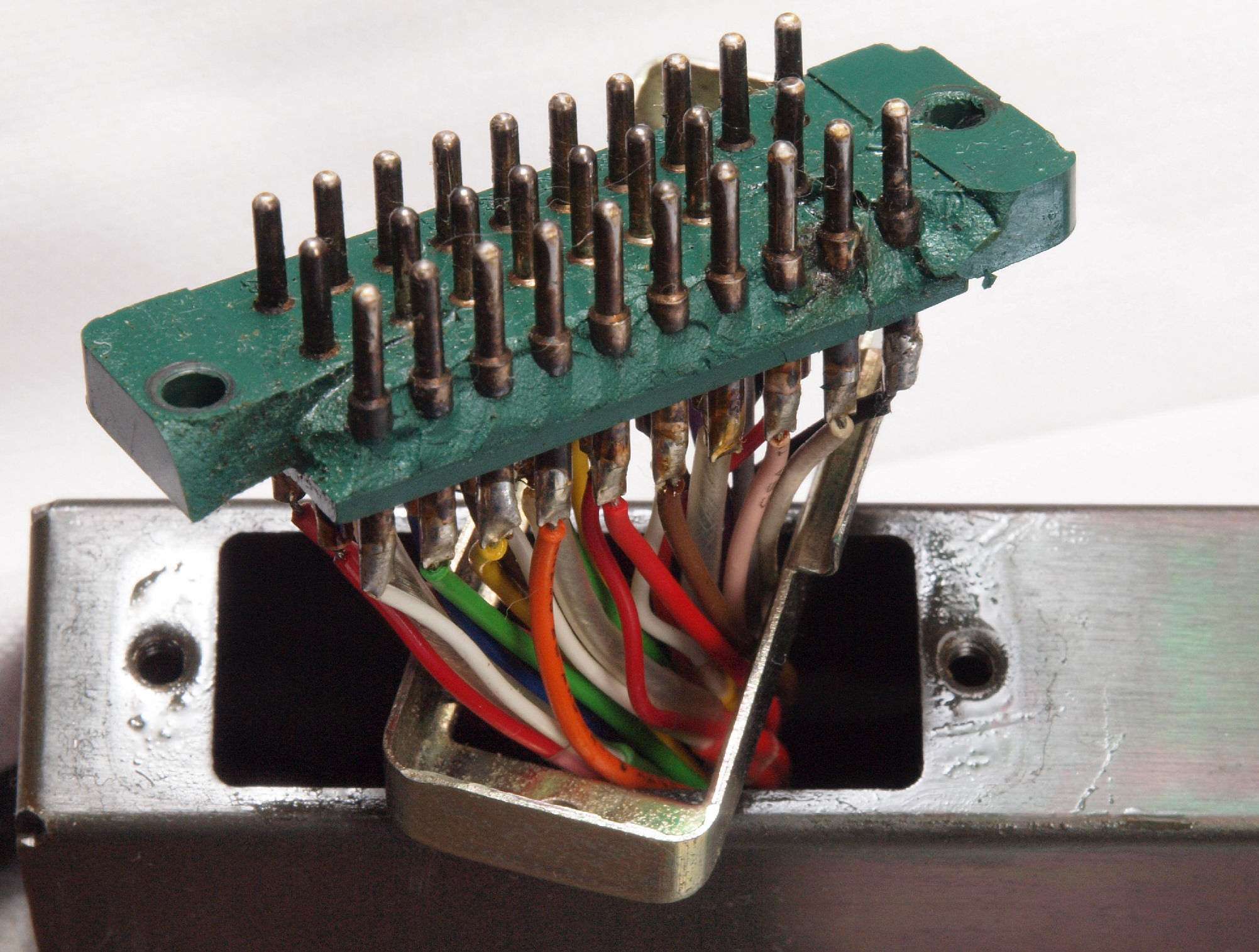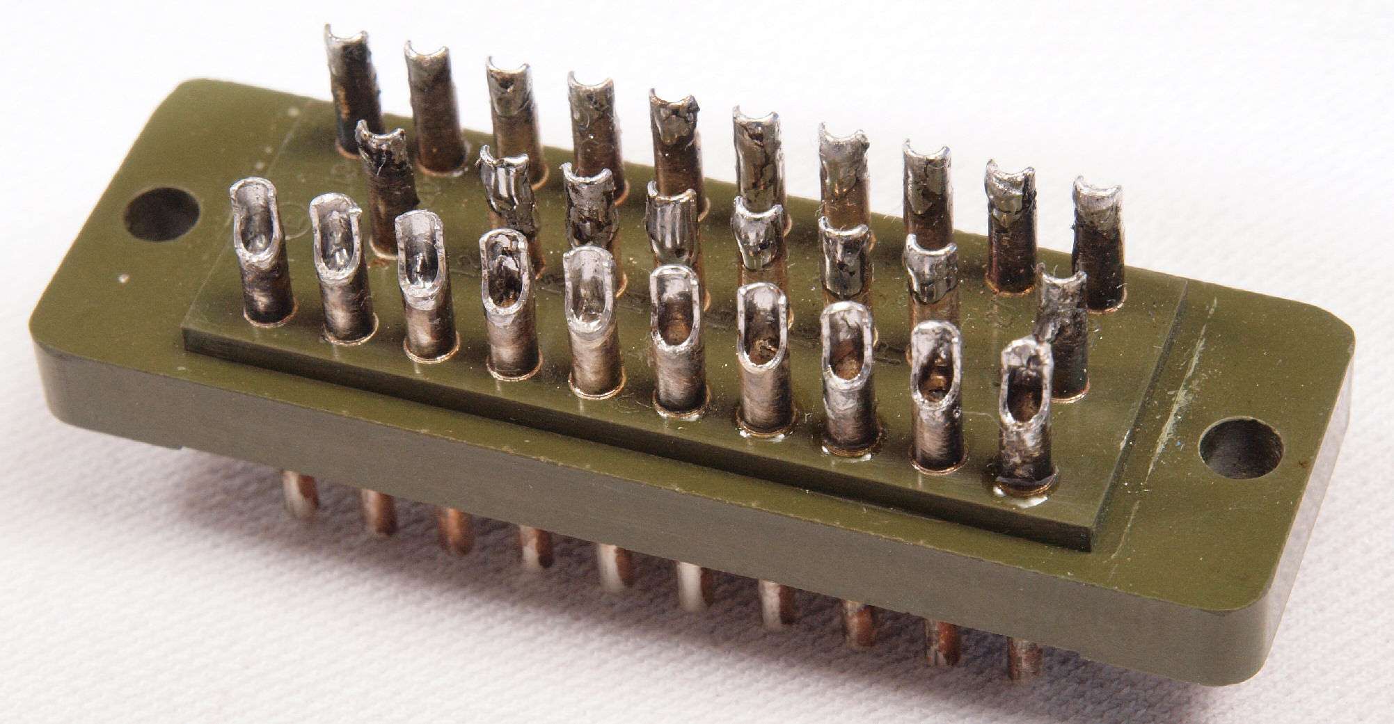 C92. 修理中 本体B−1付属の操作パネルのコネクター取り出し、半田メッキをした所。