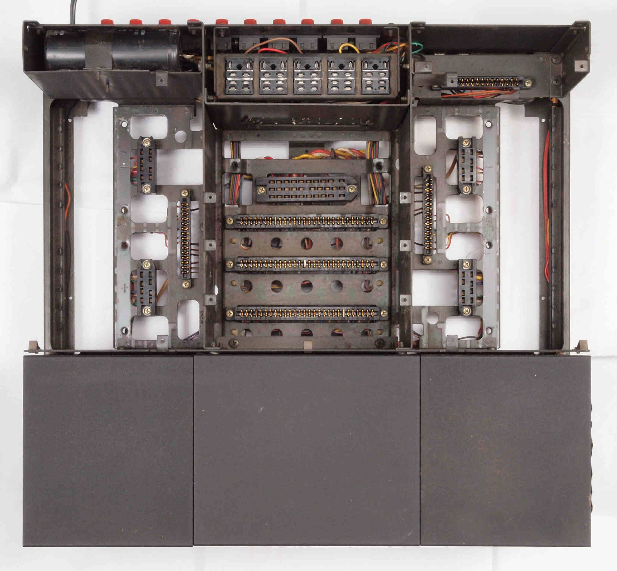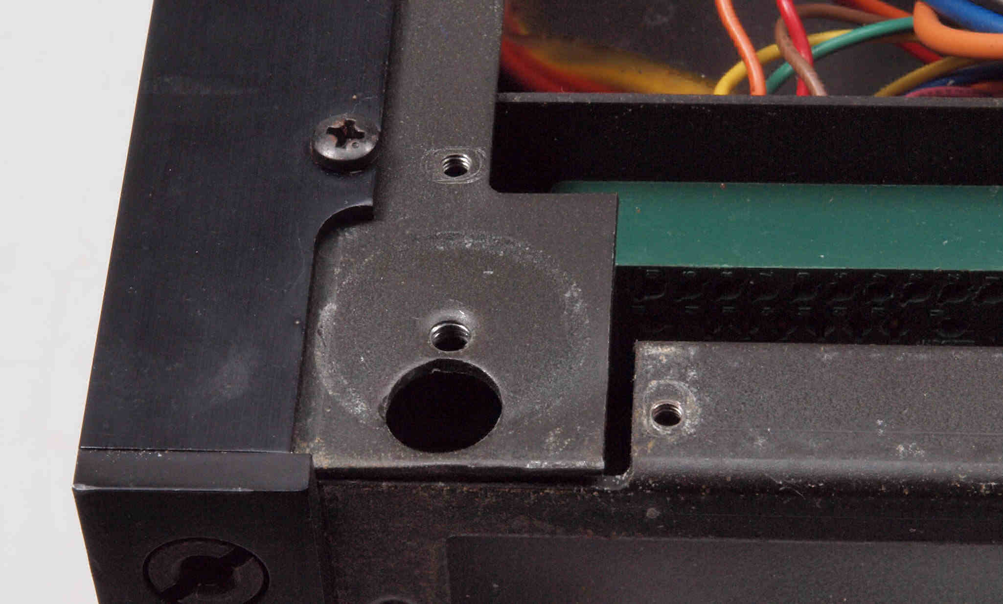 | C. 修理状況 。画像をクリックすると、大きく(横幅2050ドット)表示されます。 C0. 修理中 基板を外したシャーシ。 |