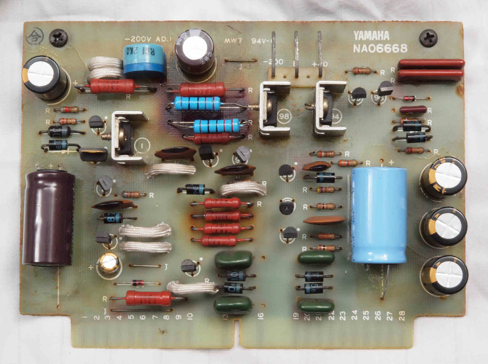 | C45. 修理前 電源1基板。TR(トランジスター)の放熱器、反対側。 | ||||||||||||||||||||||||||||||||||||||||||||||||||||