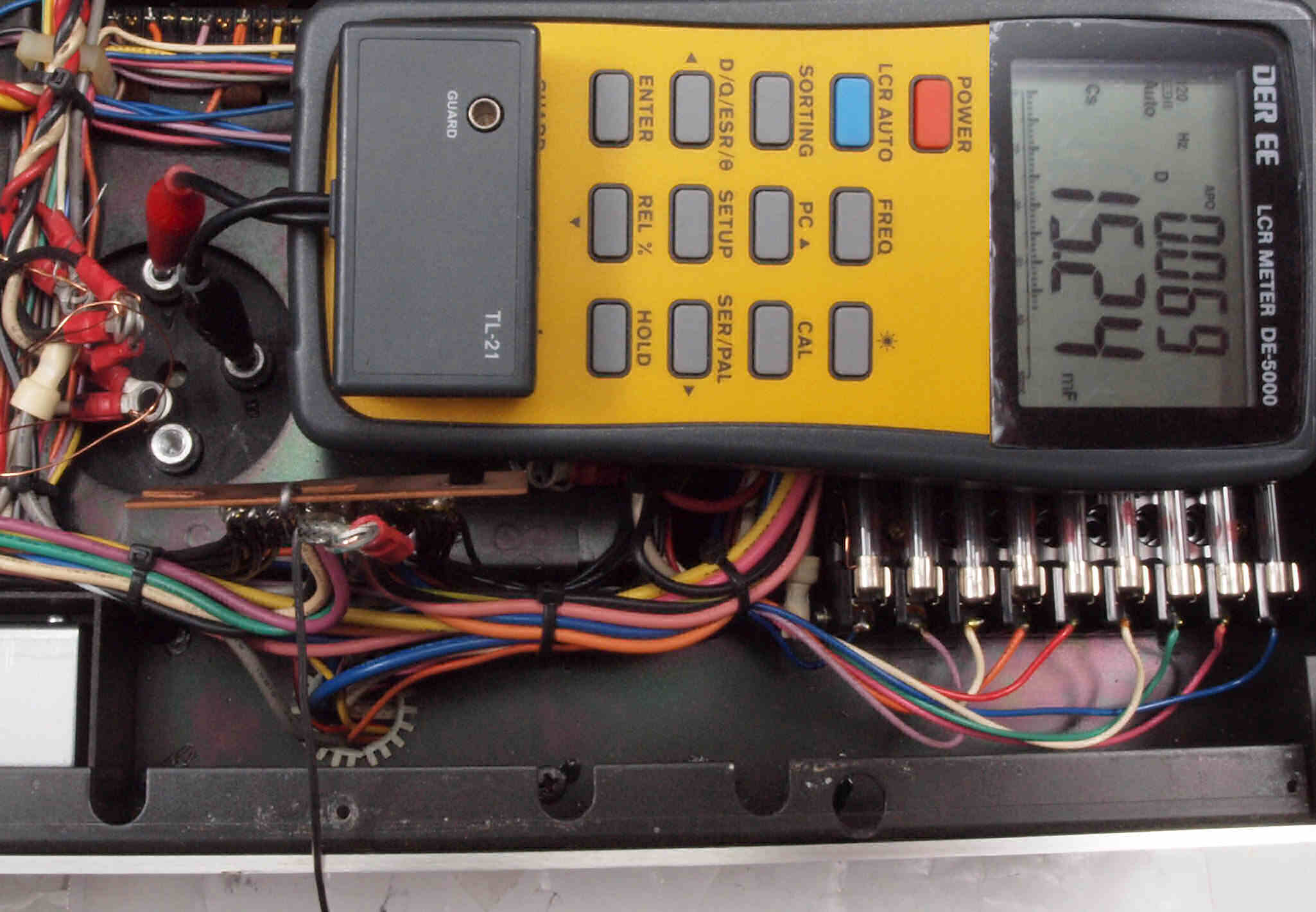 | A52. 点検中、電源ブロック電解コンデンサー容量測定、 右側+側=15240μ/120HZ。 | ||||||||||||||||||||||||||||||||||||||||||||||||||||
