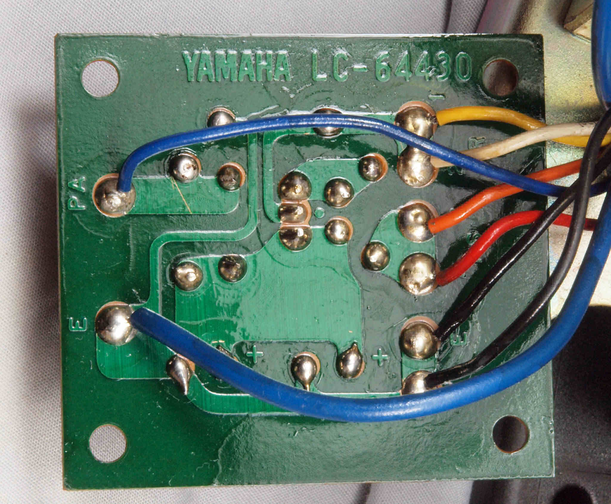 | CJ2. 修理(半田補正)後 前パネルVR・電源SW基板裏。 全ての半田をやり修す。 | ||||||||||||||||||||||||||||||||||||||||||||||||||||