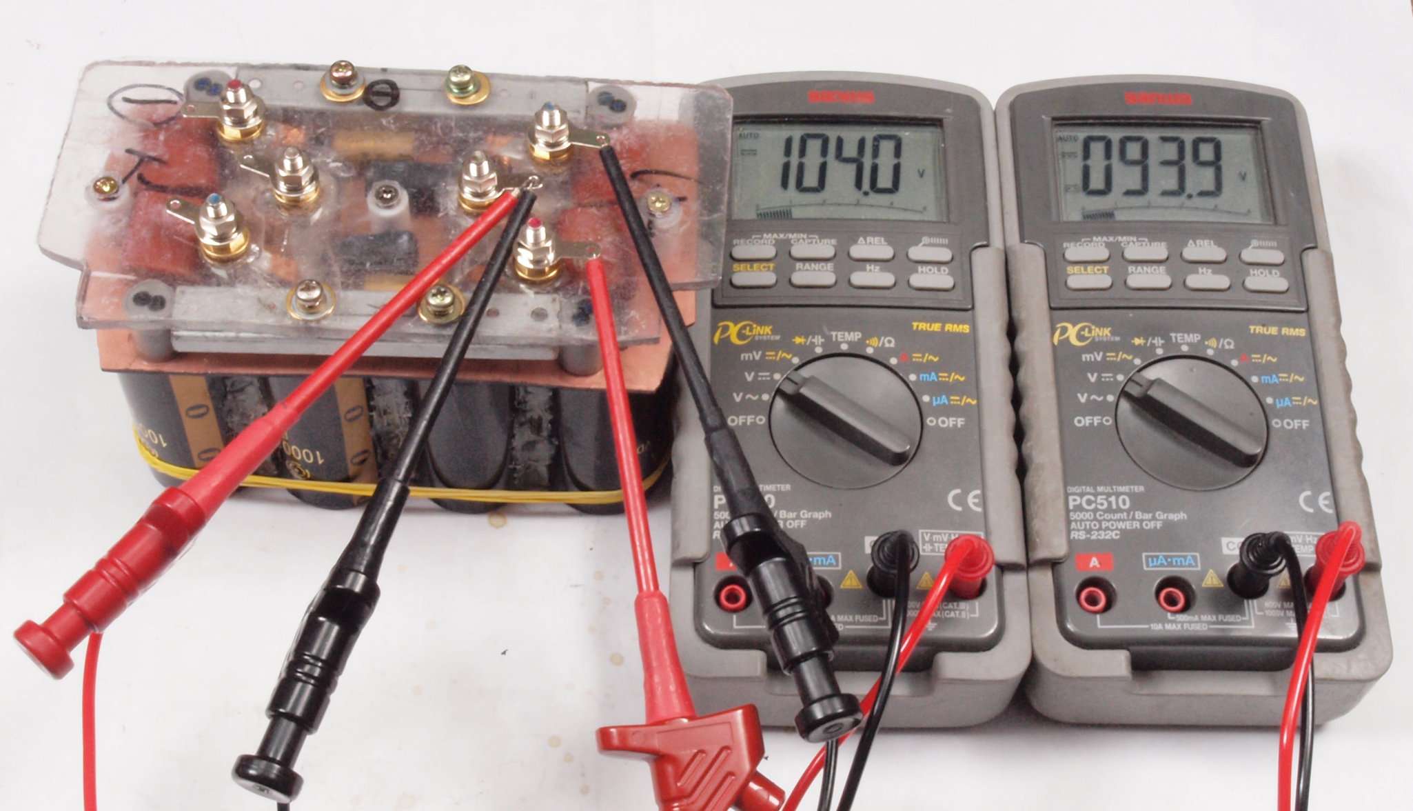 | A5D. 黄色ゴムベルト・左側用ブロック電解コンデンサー絶縁測定、 +側、−側共に100Vに充電する。 | ||||||||||||||||||||||||||||||||||||||||||||||||||||