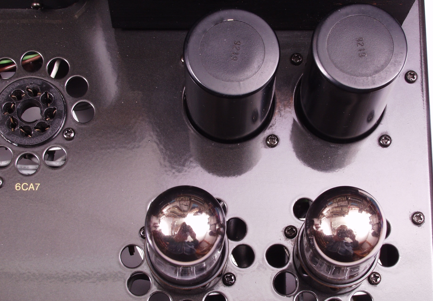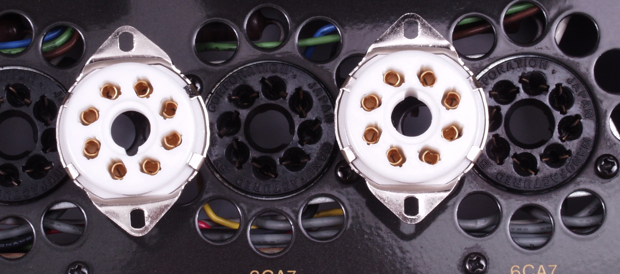 C21. 修理中 6CA7ソケット交換中 左=交換前、右=交換後