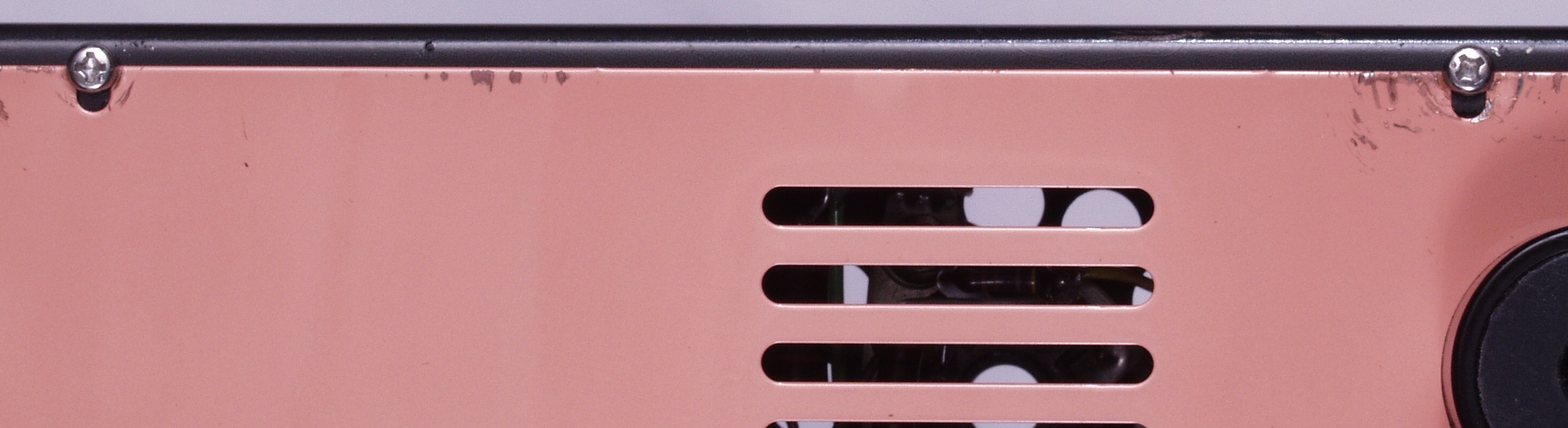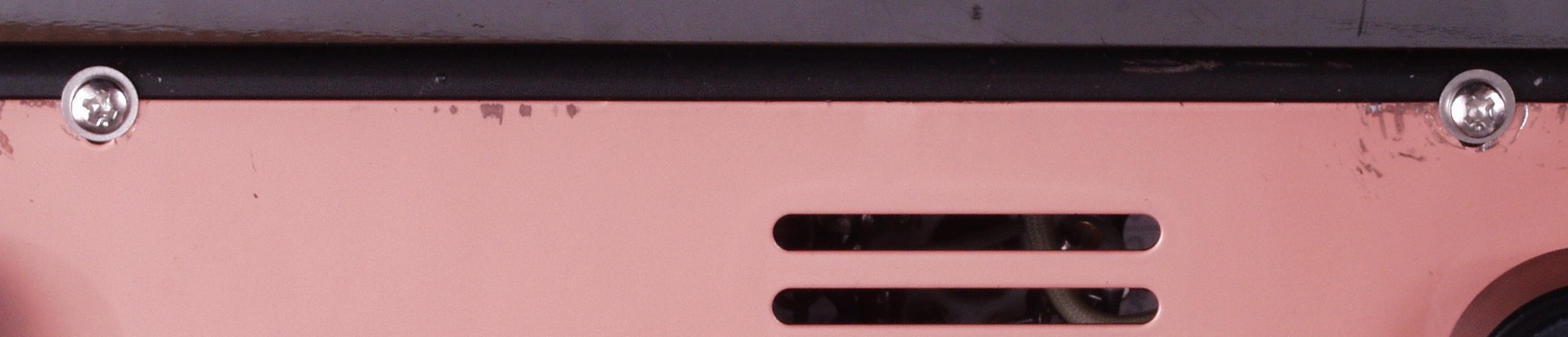 C76. 修理前 下蓋の右側止めネジ、ネジを頭の大きいのに交換し、平ワッシャーを入れる