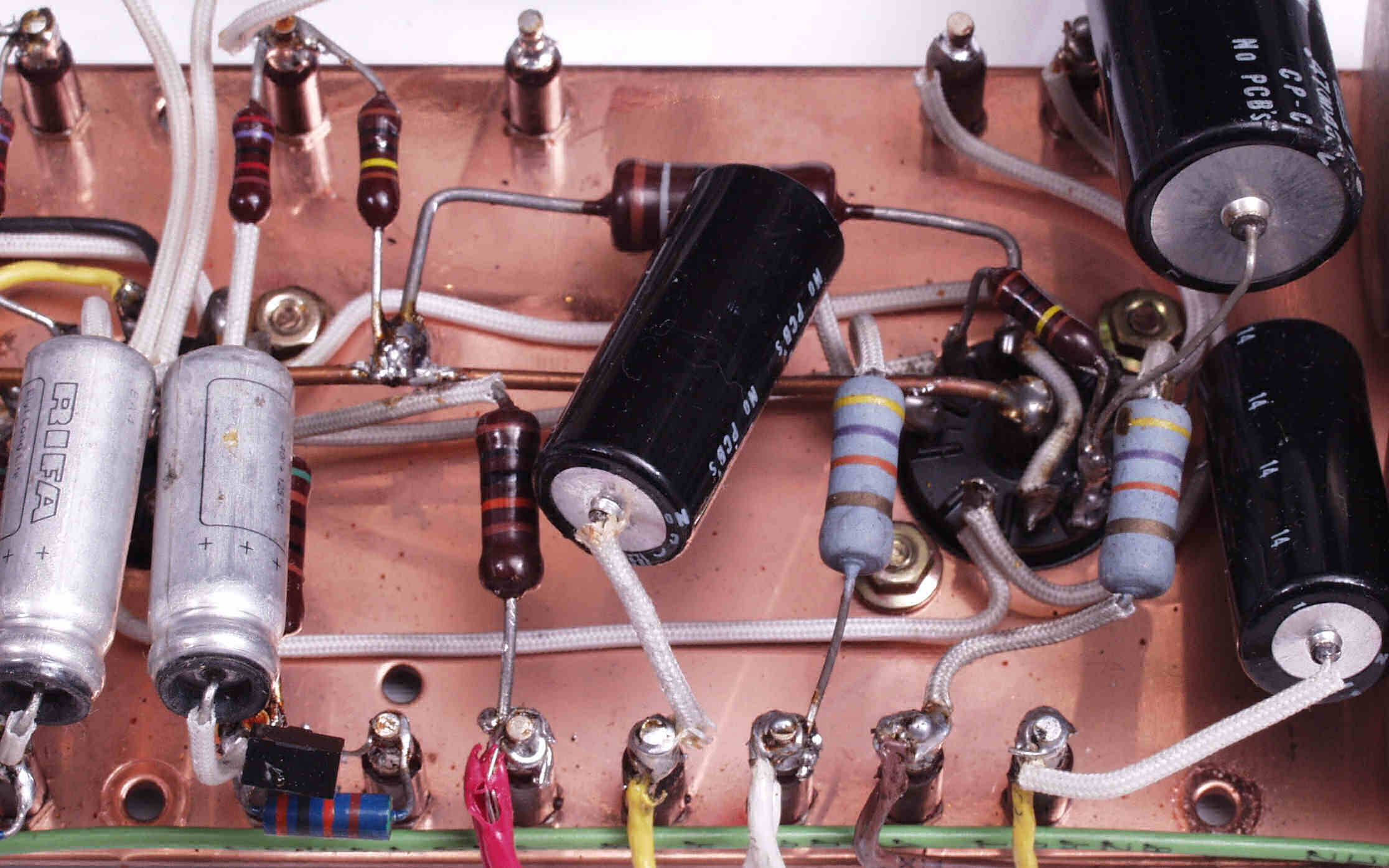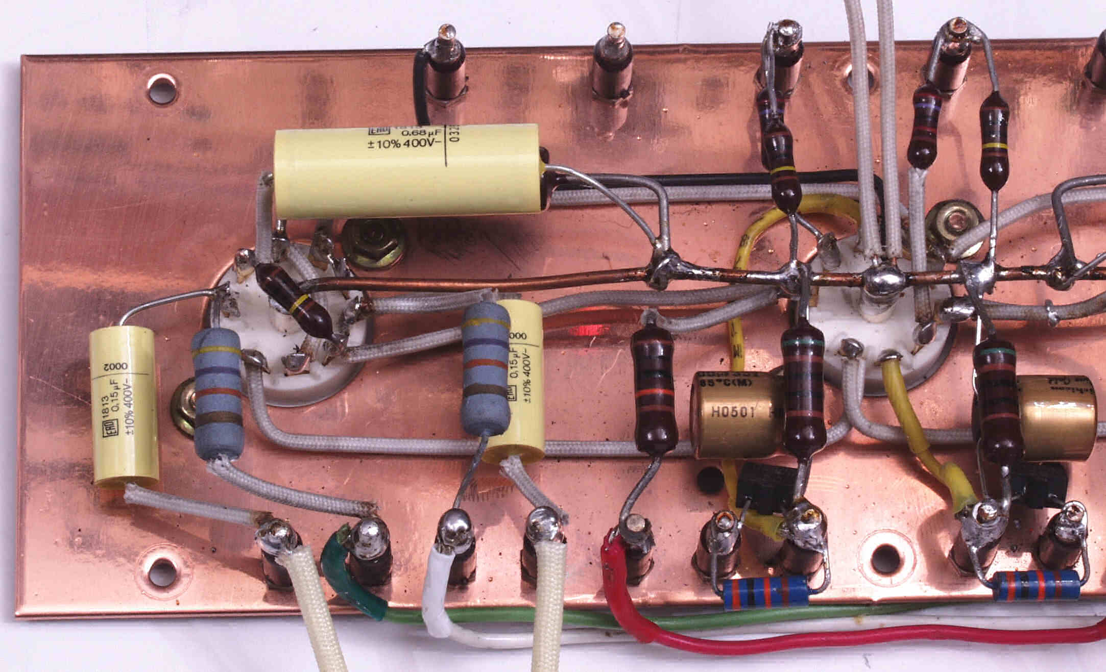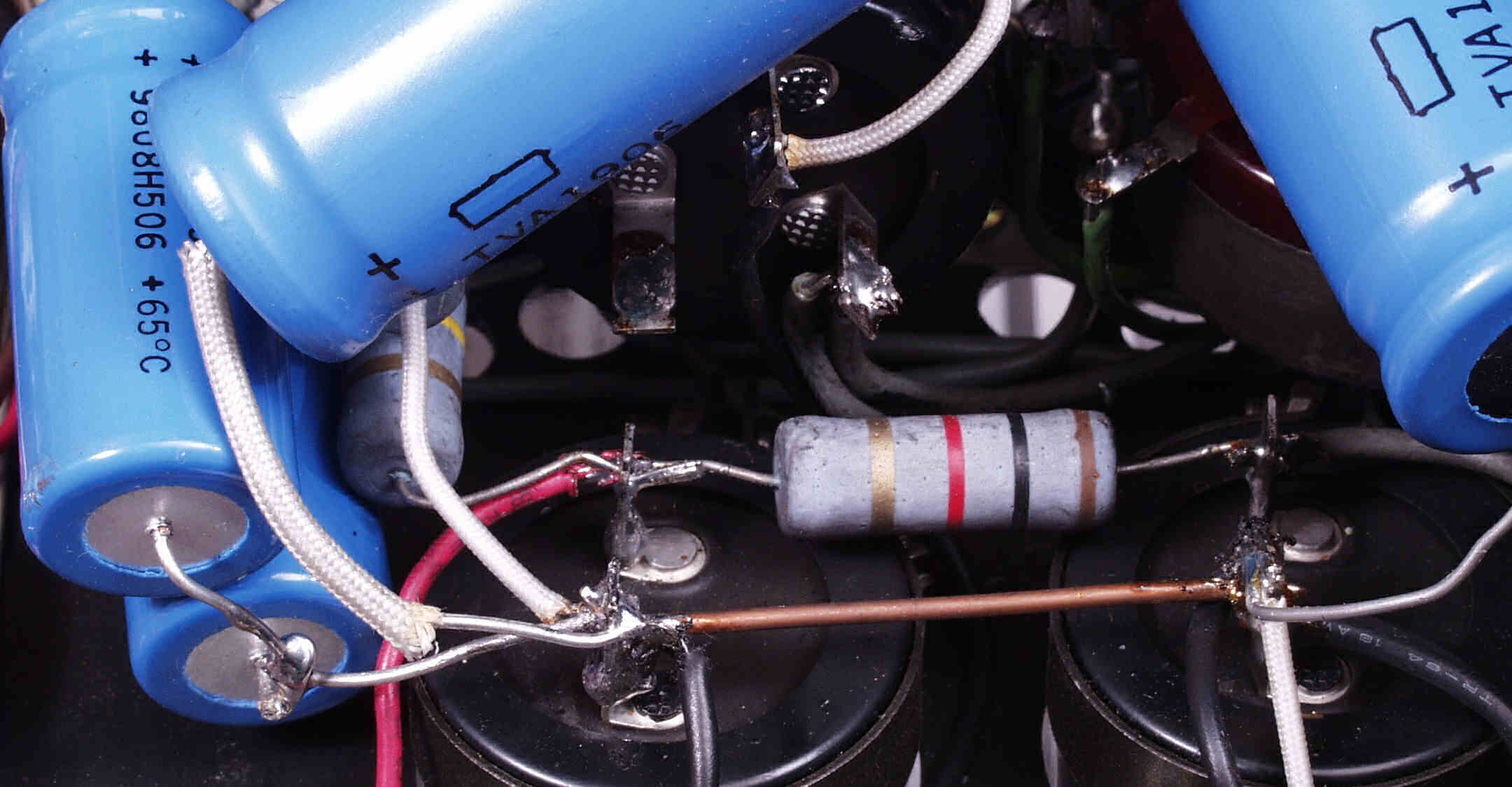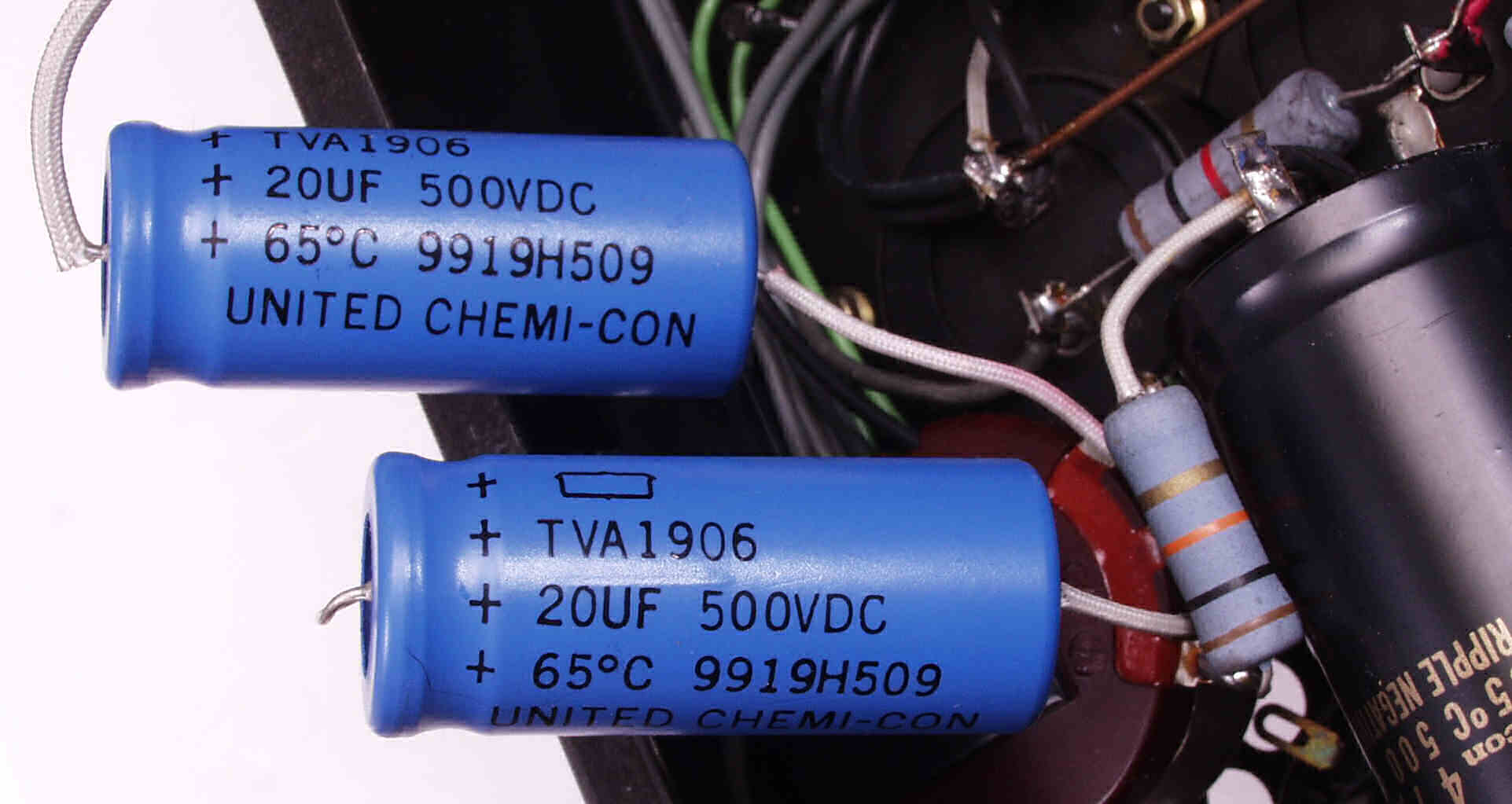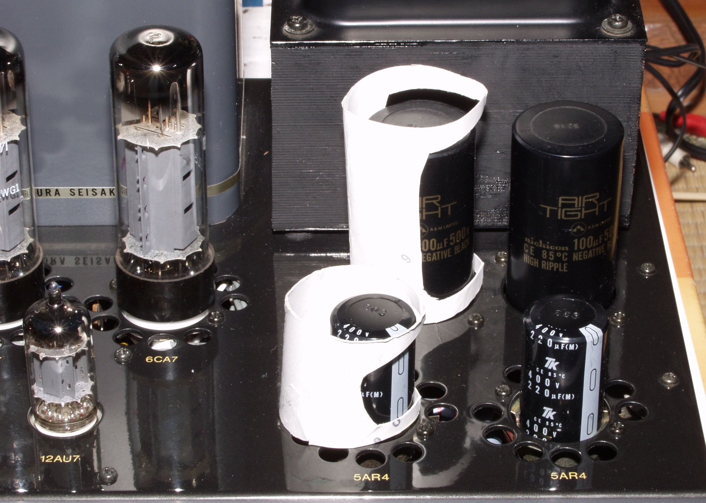A53. 修理前点検中 販売店の改造 6CA7のバイアス回路(50V)に増設された500VW−20μの電解コンデンサー?